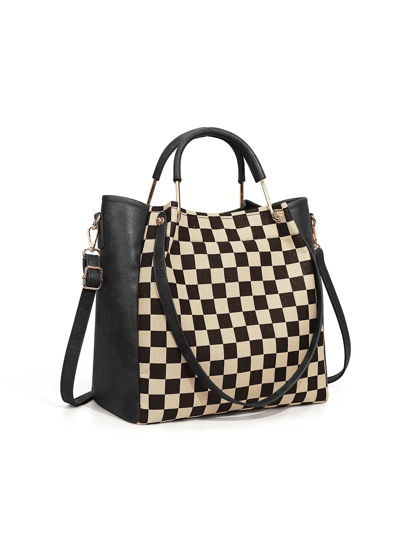 5. Women's Fashionable Checkered Handbag Set, Including Large Capacity Handbag & Crossbody Bag, Trendy Versatile Daily Commuting Bag Set