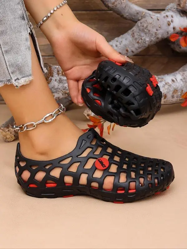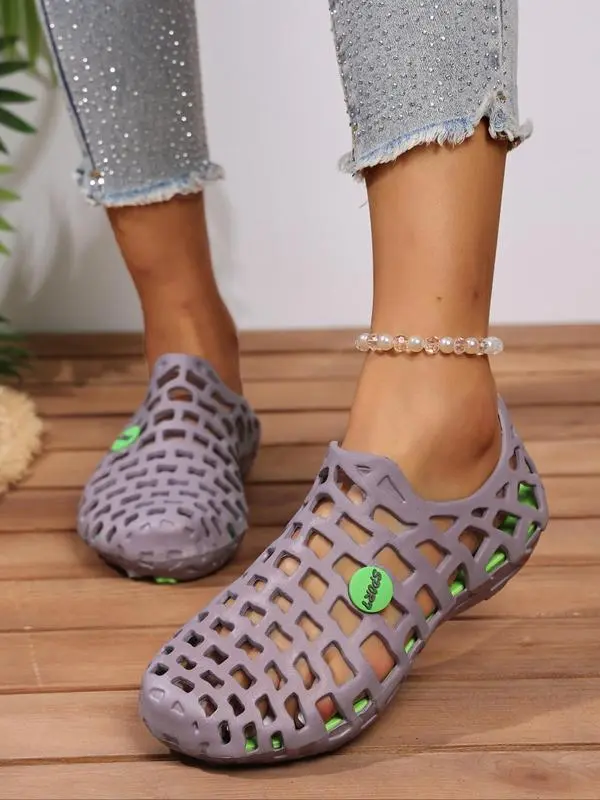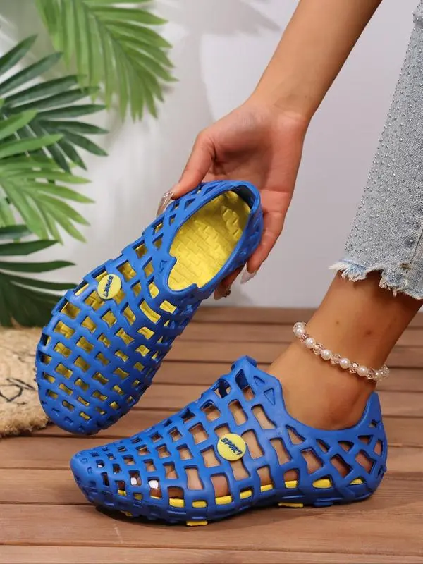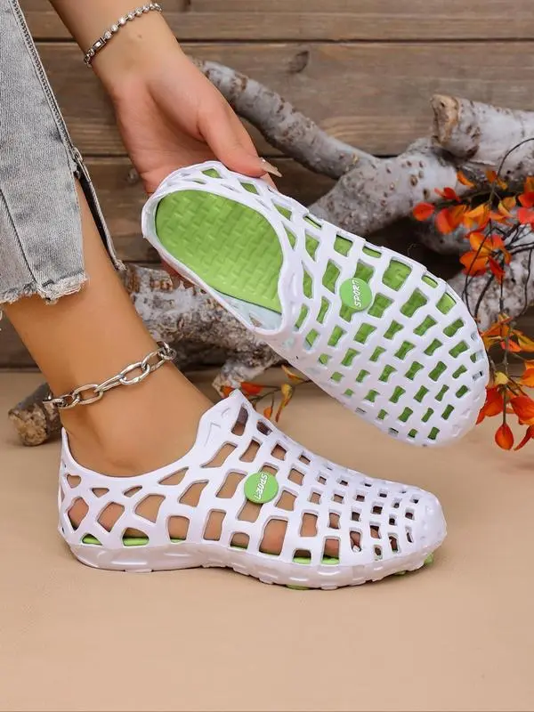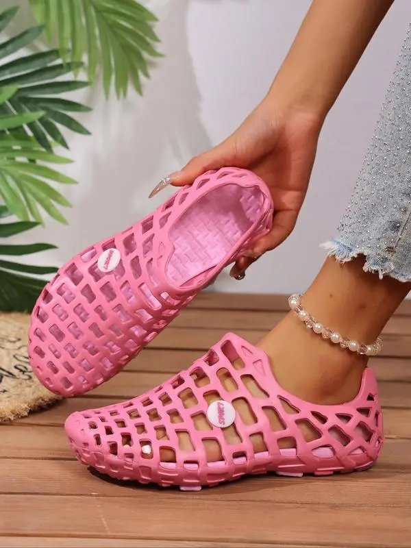 5. Women's Fashionable Plain Color Hollow Out Design Slides, Casual Comfortable Soft Sole Slippers, Non-slip Beach Slippers for Indoor & Outdoor Wear, Walking Shoes