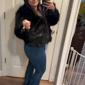 I can’t say enough about this beautiful fur jacket . The gold accents against the black luxe fur the little pops of faux leather make it a stand out! For our current climate I can wear this like a second layer. It’s definitely suitable as a jacket when the temps climb above 30• Fahrenheit