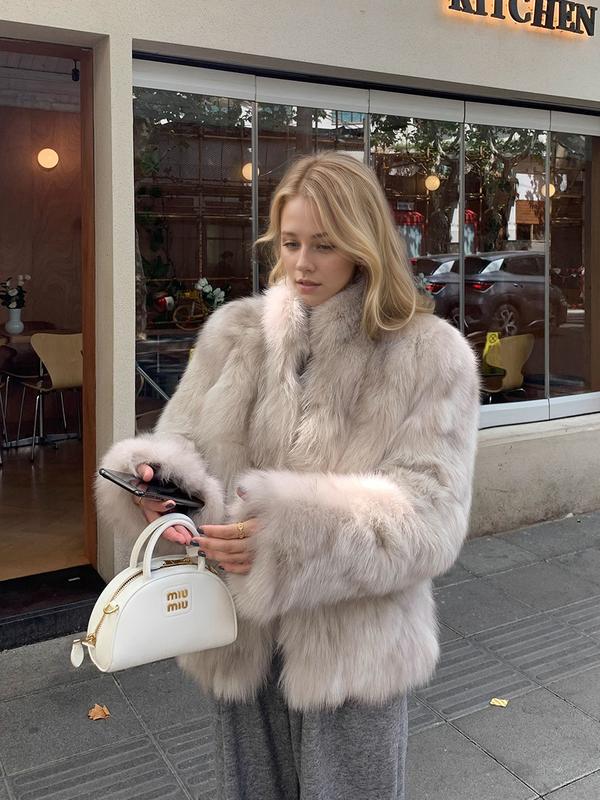 Women's Faux Fox Fur Coat, Stand Collar Long Sleeve H-Line Cut Thickened Warm Winter Fashion Casual Longline Outerwear, Casual Commuter StyleWomen's Faux Fox Fur Coat, Stand Collar Long Sleeve H-Line Cut Thickened Warm Winter Fashion Casual Longline Outerwear, Casual Commuter Style