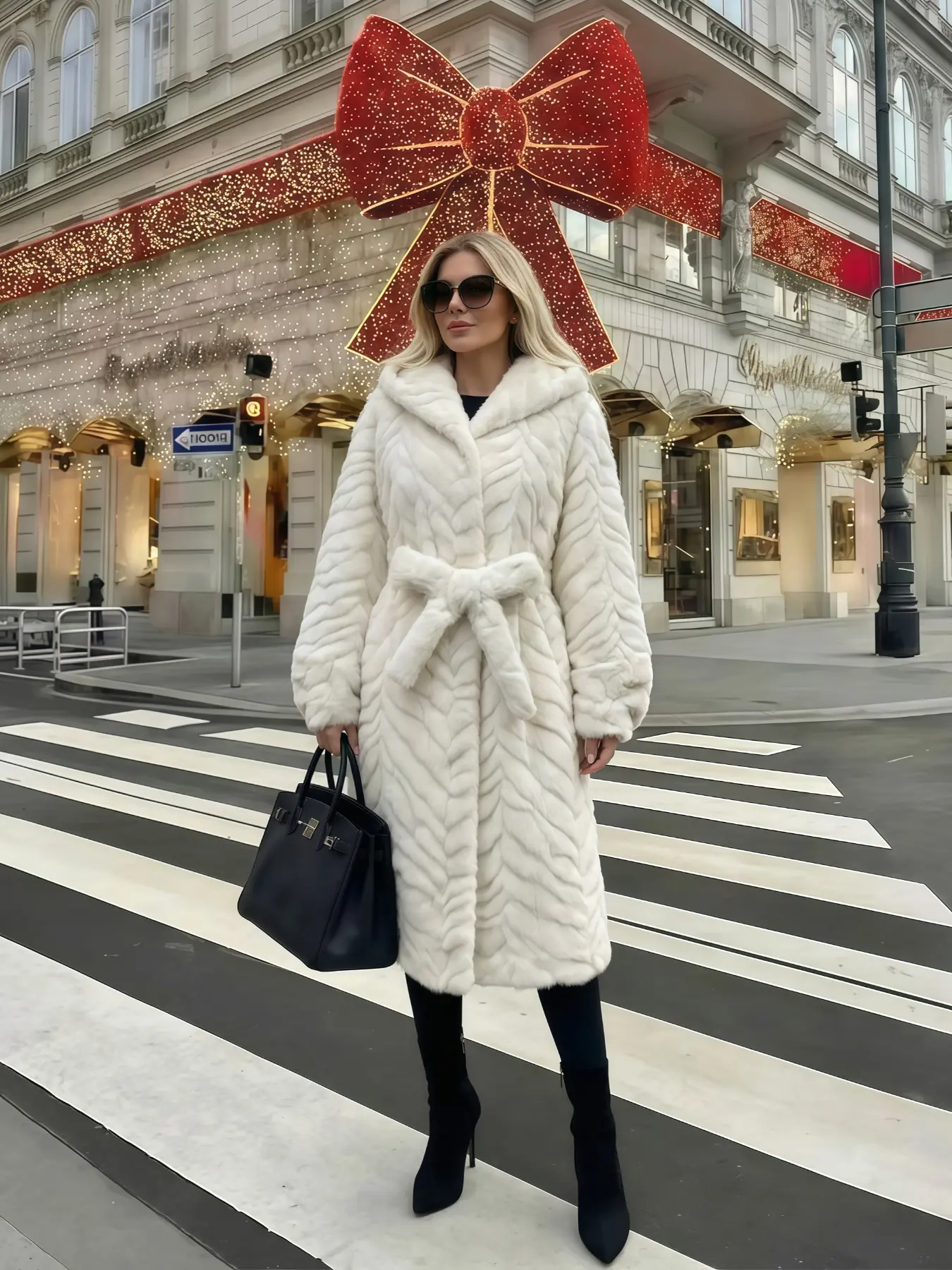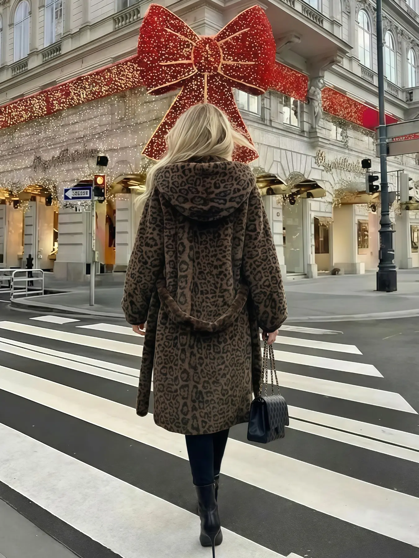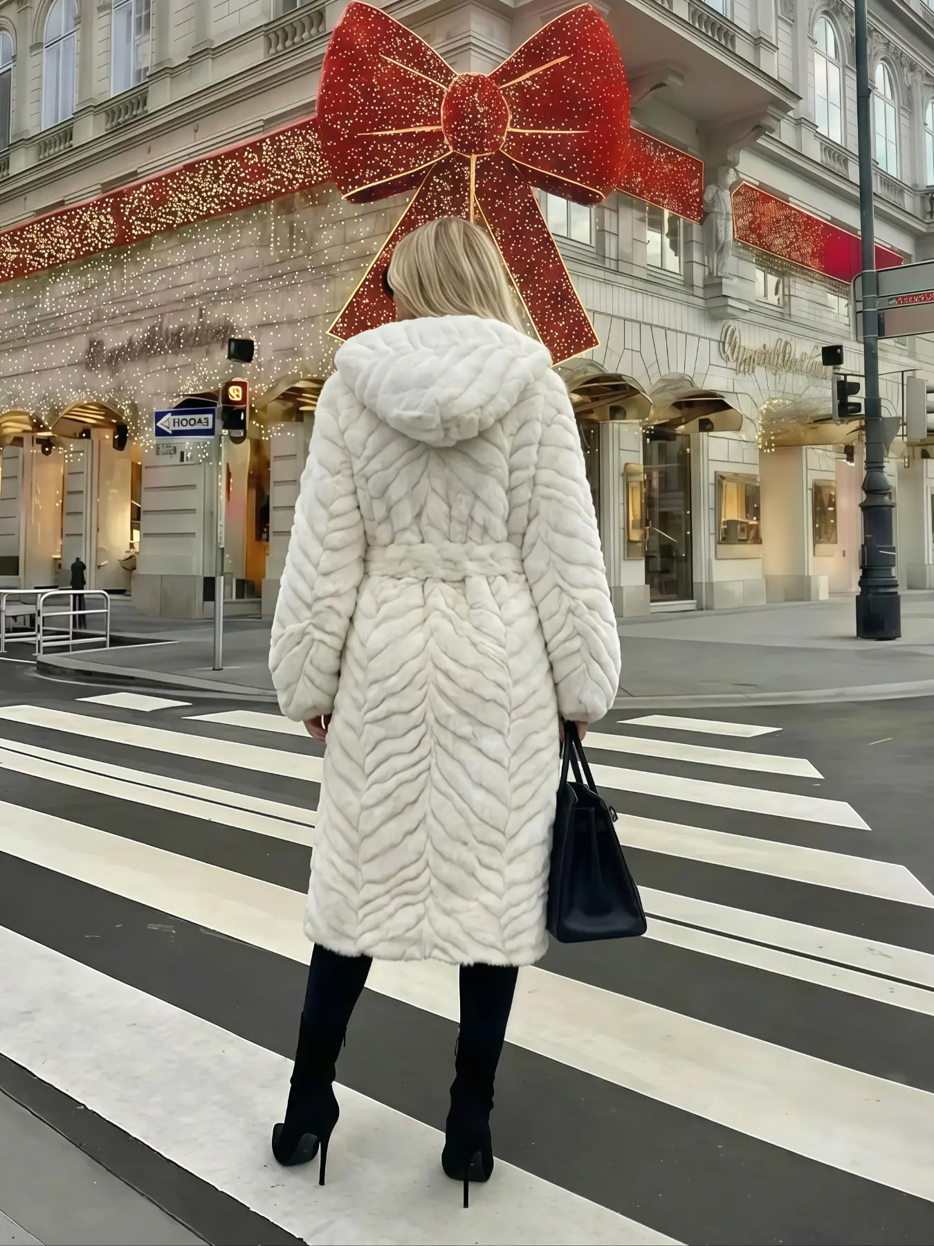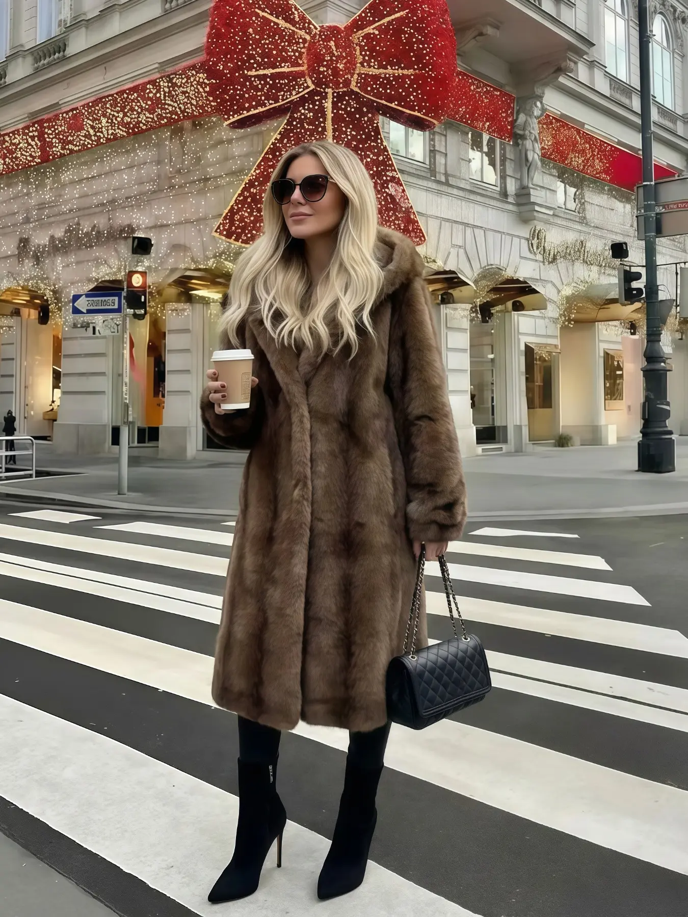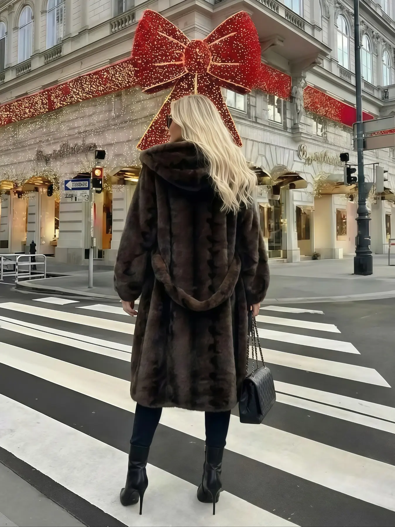 Women's Faux Fur Coat #FauxFurCoat #WinterOuterwear #RetroHoodedStyle #MediumLengthJacket #GftForTheBoldOne