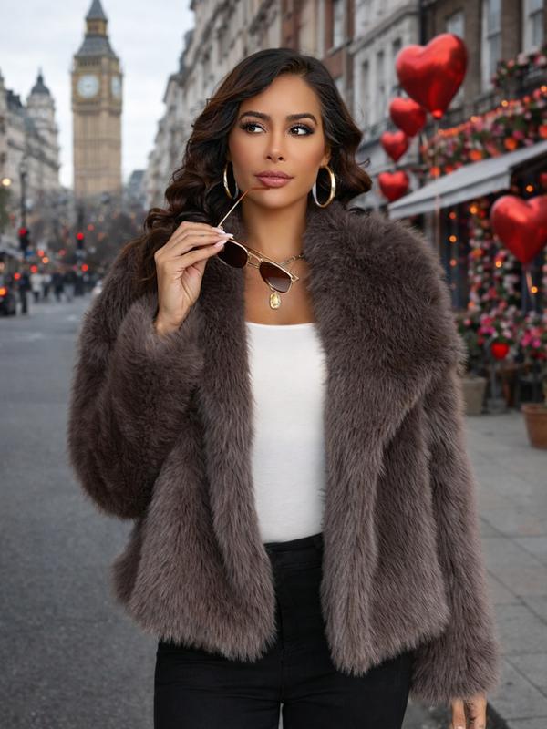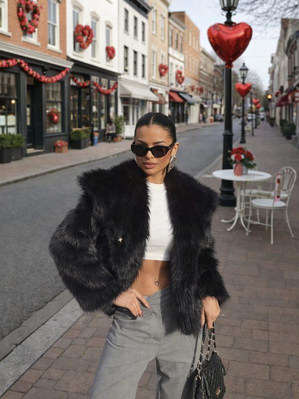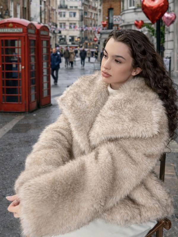 Women's Faux Fur Coat, Winter Street Style Casual Loose Short Large Collar High-End Fluffy Outerwear