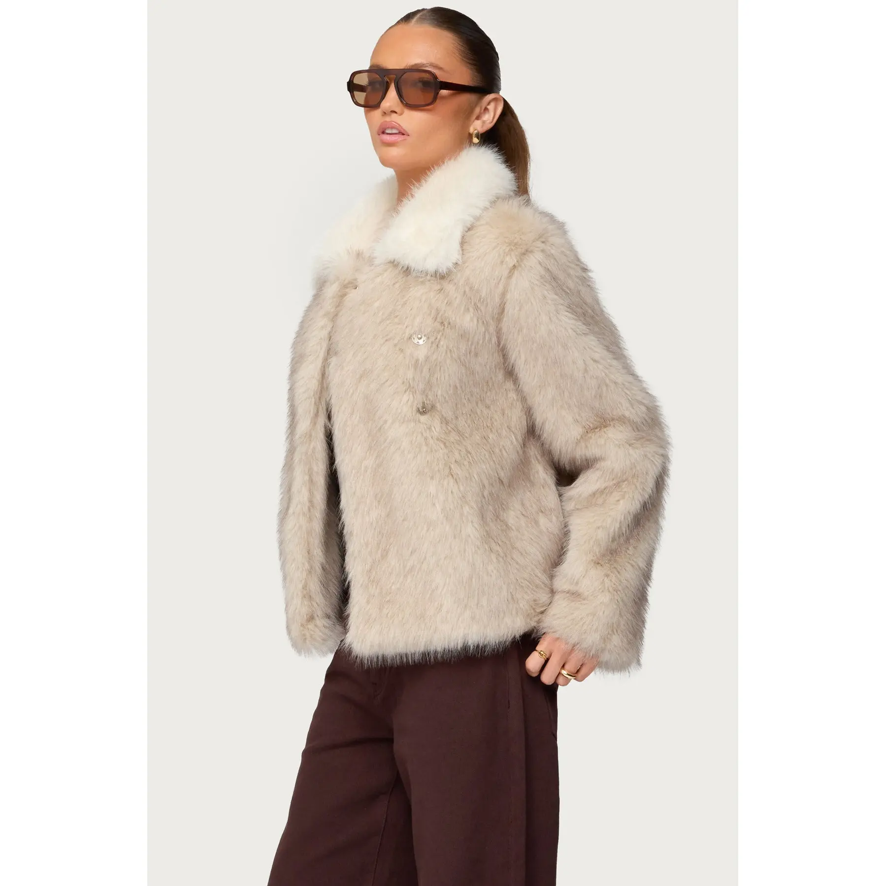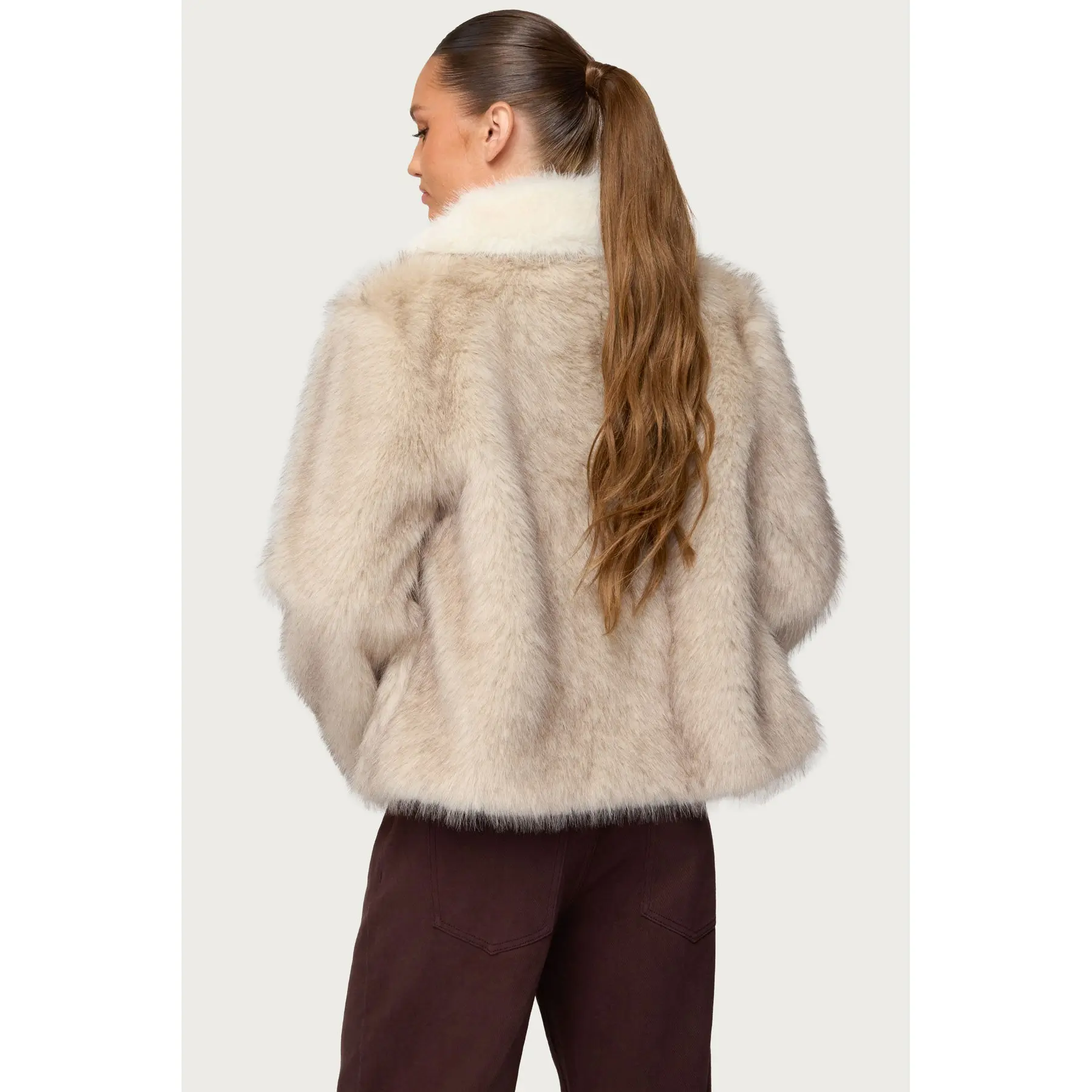 Contrast Collar Faux Fur Jacket