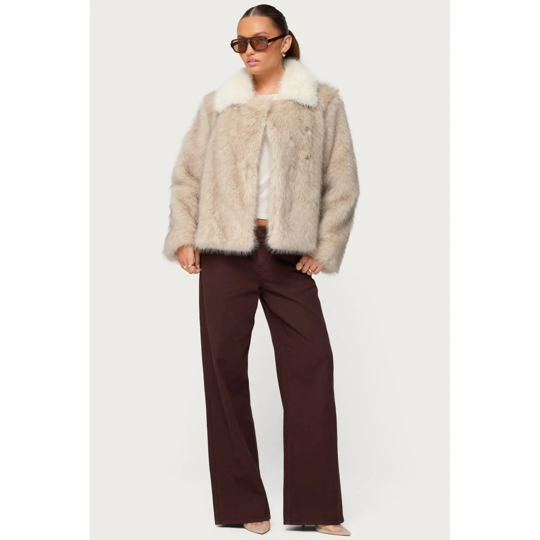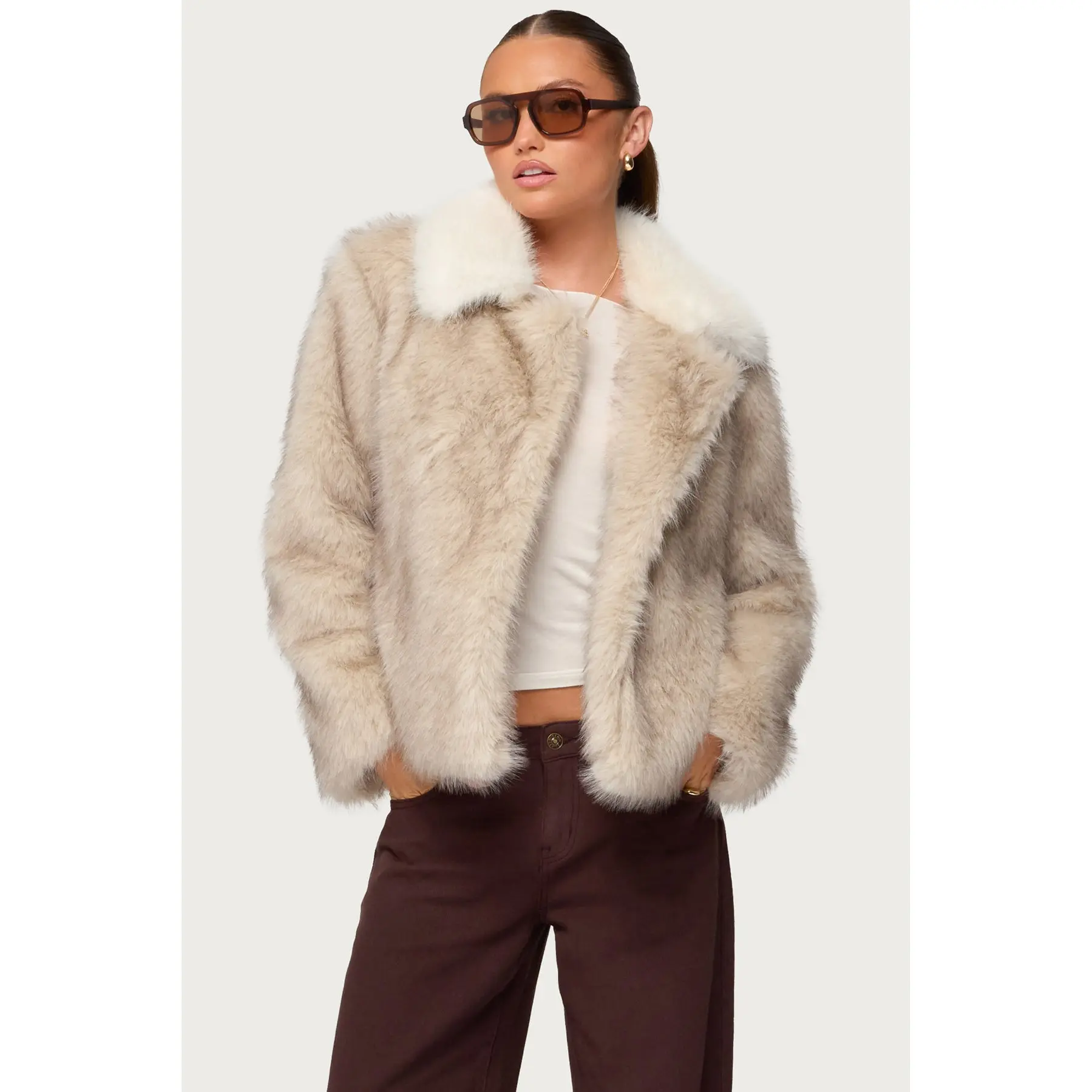 5. Contrast Collar Faux Fur Jacket