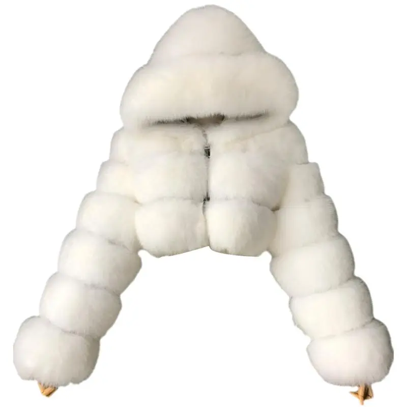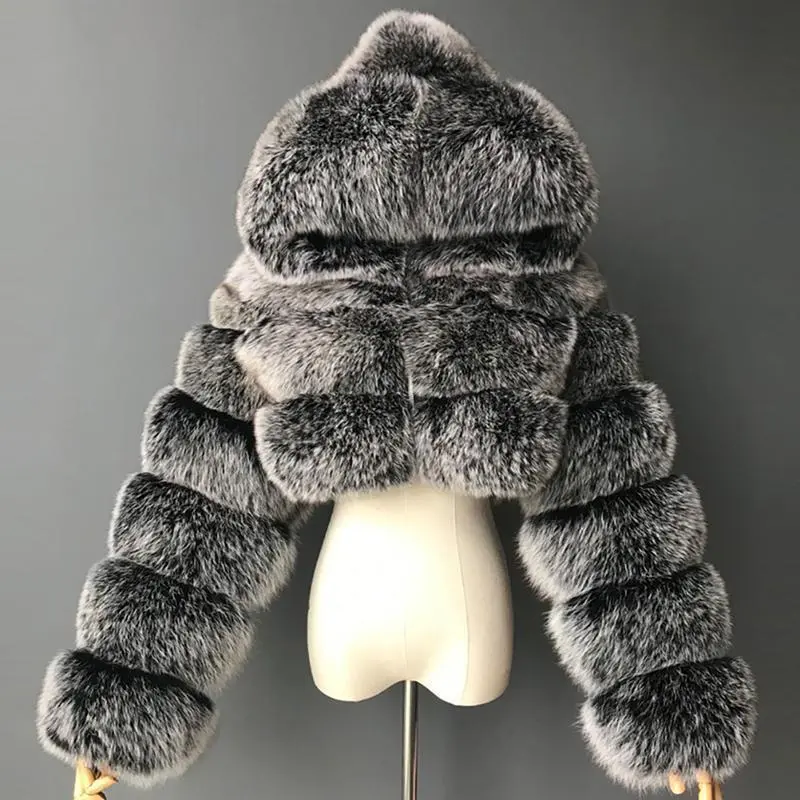 5. Loose Women Jacket Fashion Autumn Winter Faux Fur Cropped Coat Fffy Zip Hooded Warm Short Jacket