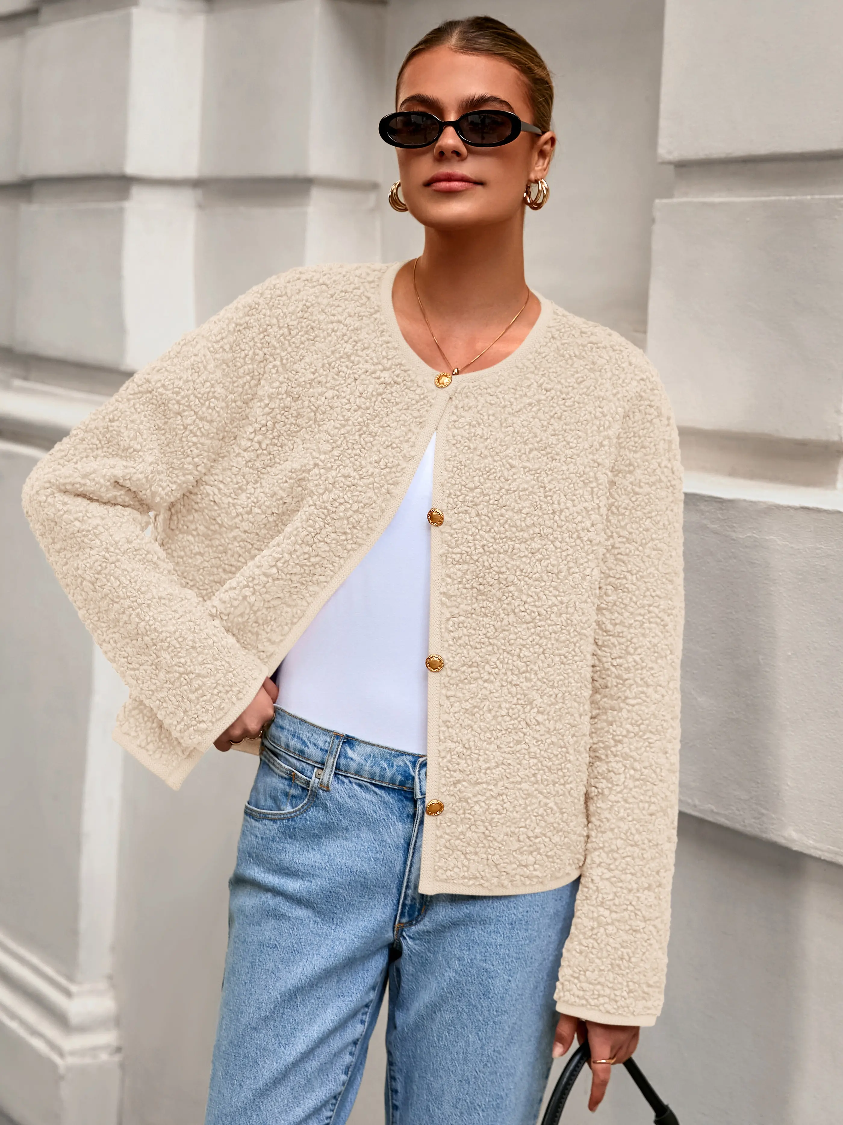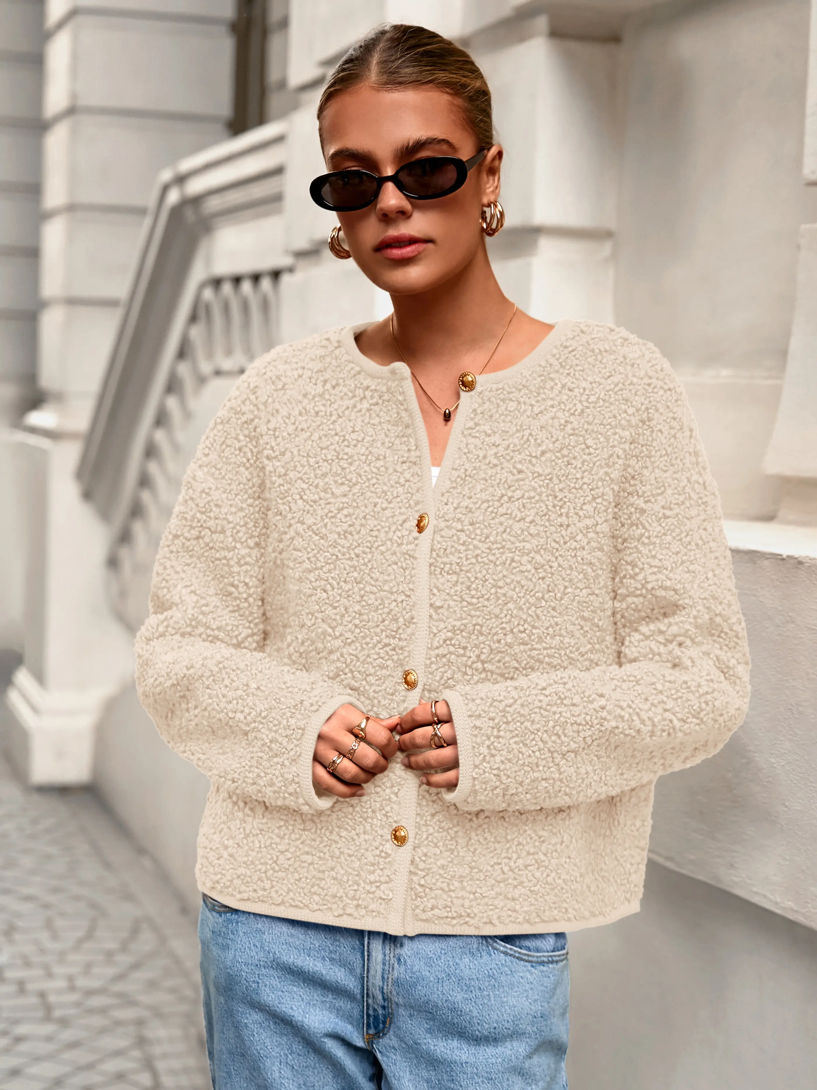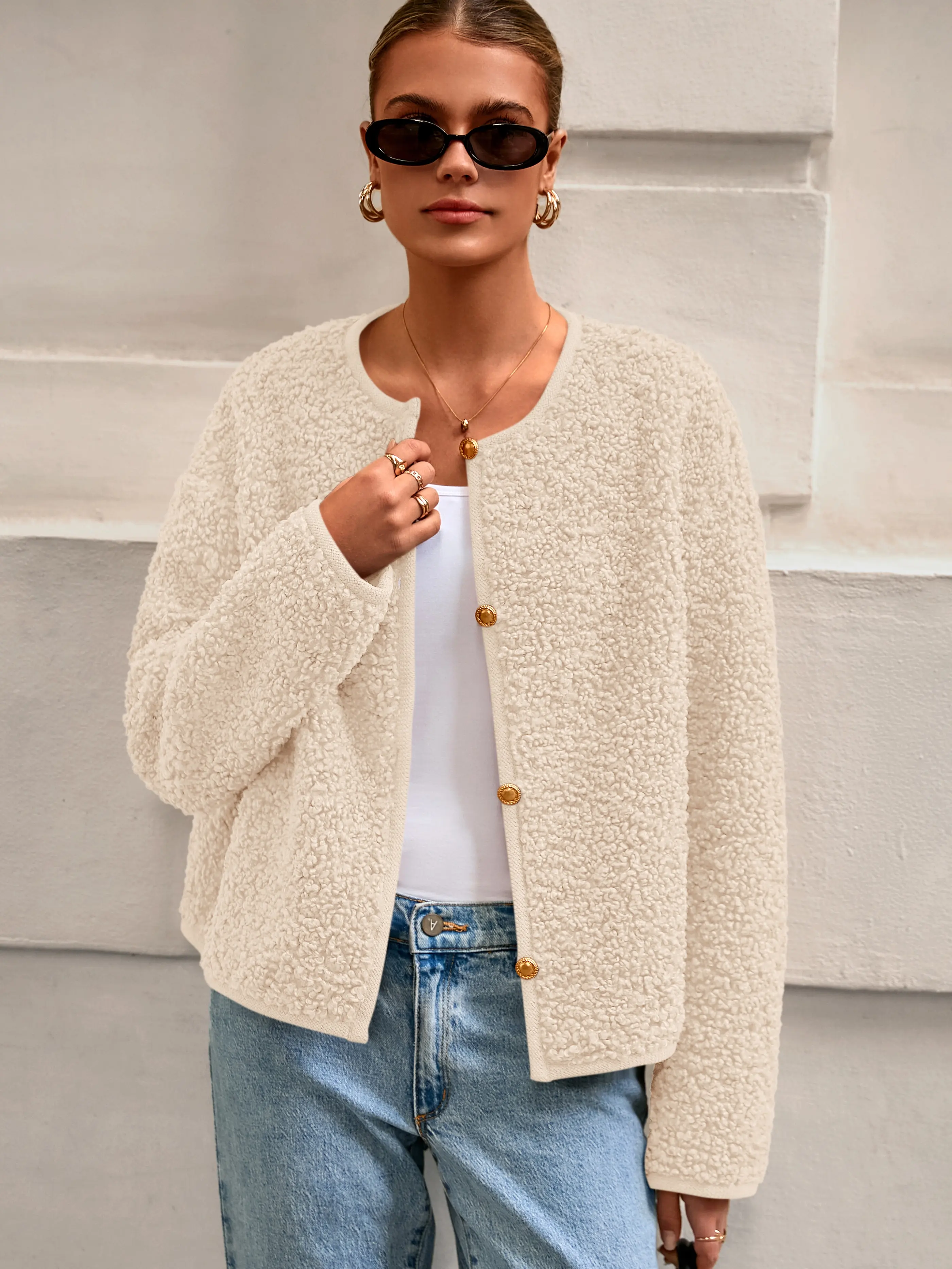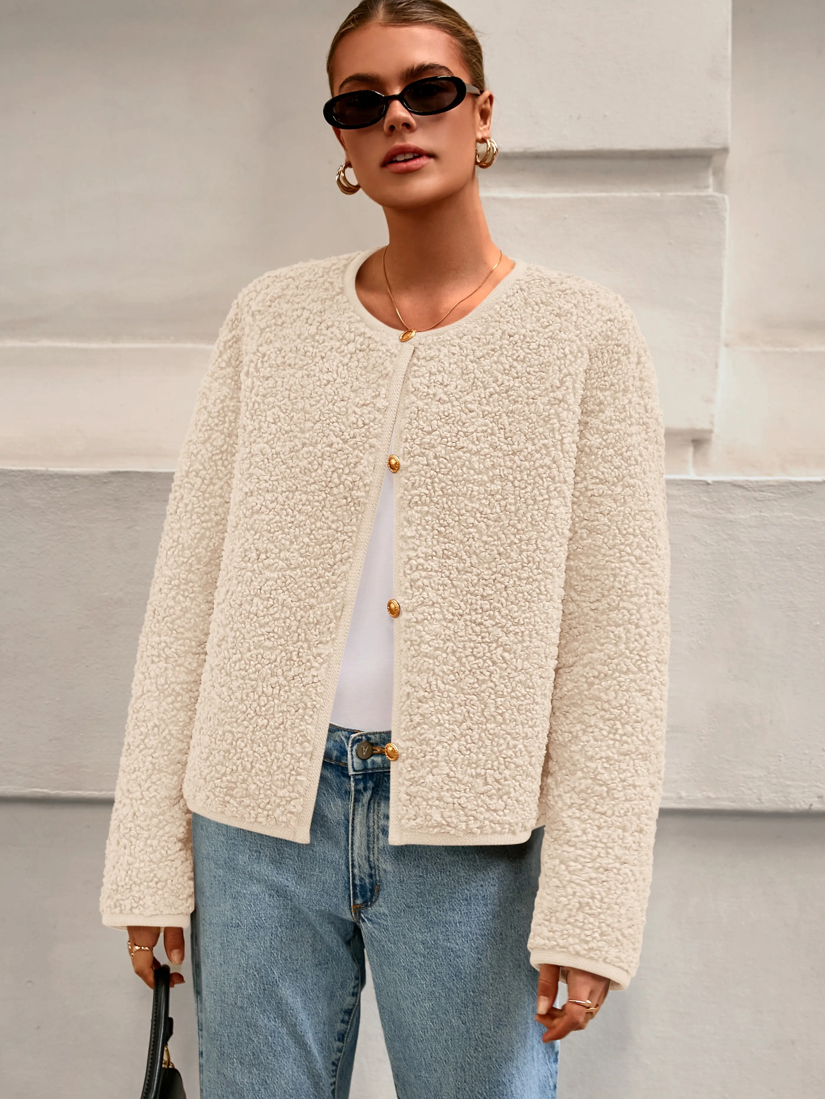 ·Model Wearing: The coat in a cozy beige color