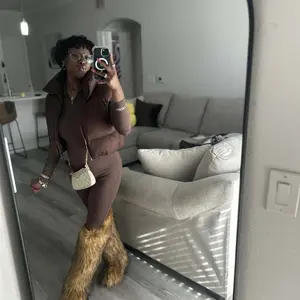 Let start off by saying the delivery was fast and thats always a plus the boots are a little brighter than the picture and that's fine with me because I truly love my furry boots im looking forward for the colder winter months so I can wear my beautiful boots and let me not forget to say how comfortable they're i definitely recommend getting a pair for yourself and even a family member friend etc