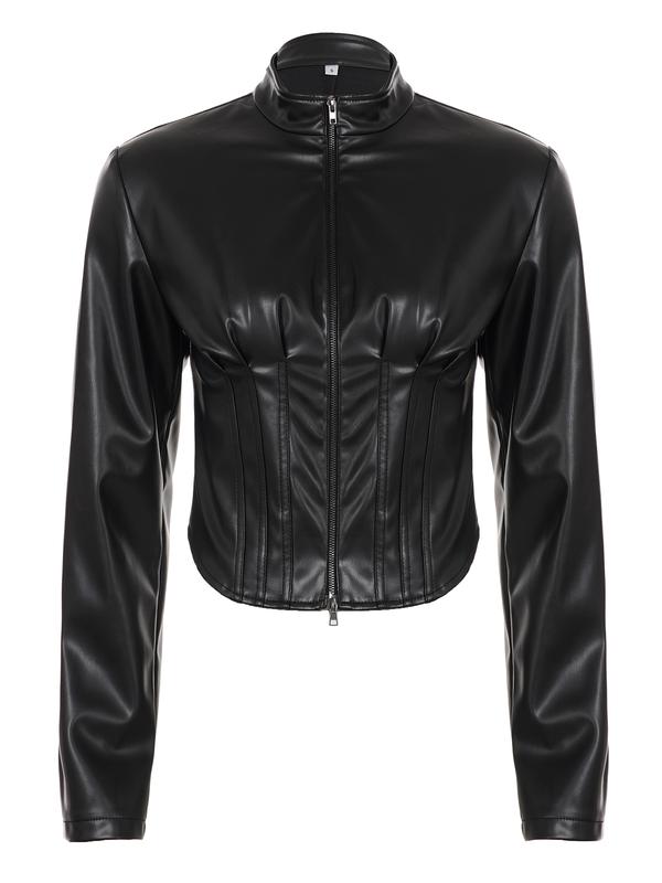 Women's Street Style Faux Leather Long Sleeve Jacket, Winter Slim Fit Biker Coat with Zipper Design, Casual Fashion Outerwear for Women