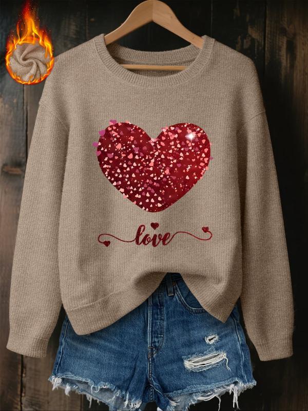 Women's Casual Fashion Round Neck Faux Sweater Top, Heart Letter Print, Comfortable Fall & Winter Wear, H-Type Silhouette