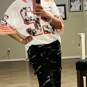 Love the jersey cute comfy and just like the picture but the Large is alil too big for me feels like a 2x so I have reordered medium size just for alil snug but oversized fit