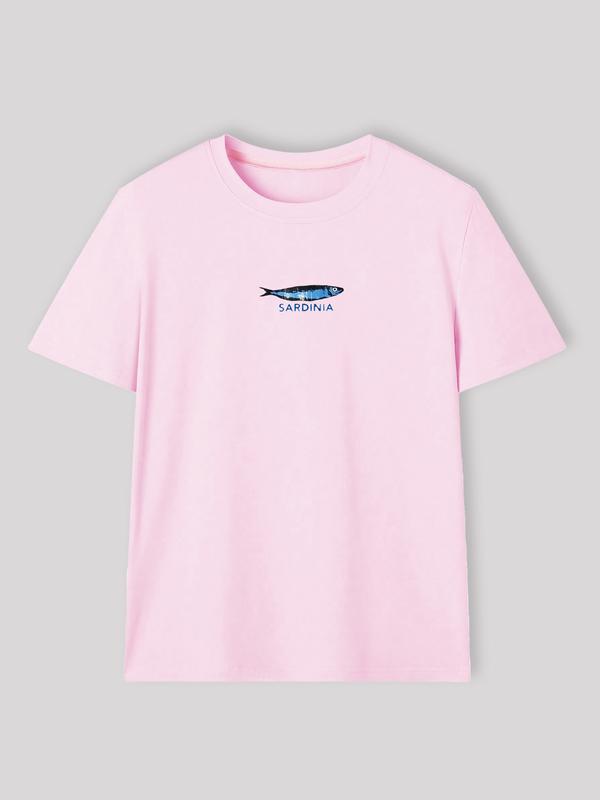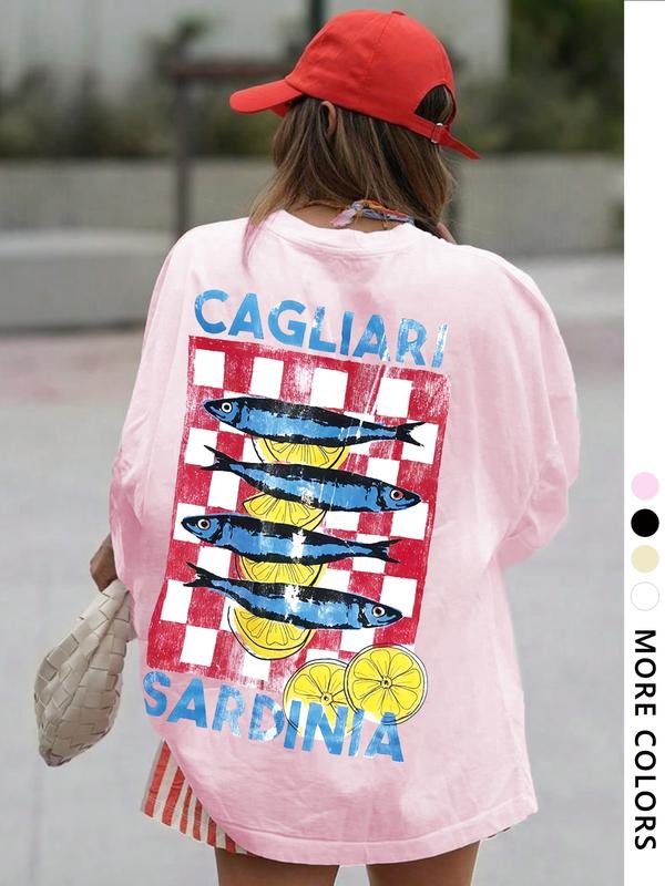 5. Women's Fish & Lemon Print Round Neck Tee, Casual Letter Graphic Short Sleeve T-shirt for Daily Wear, Ladies Clothes for All Seasons, Top