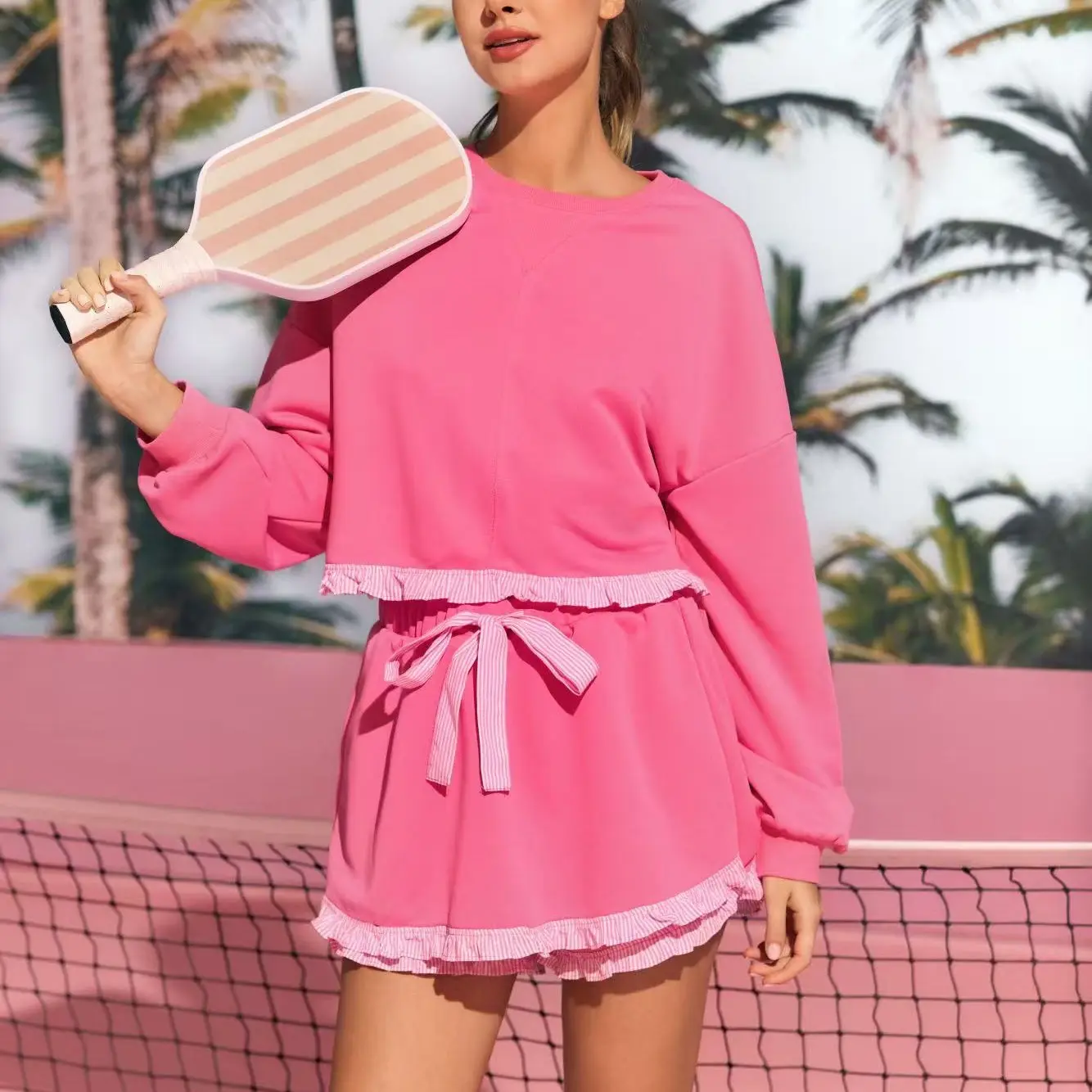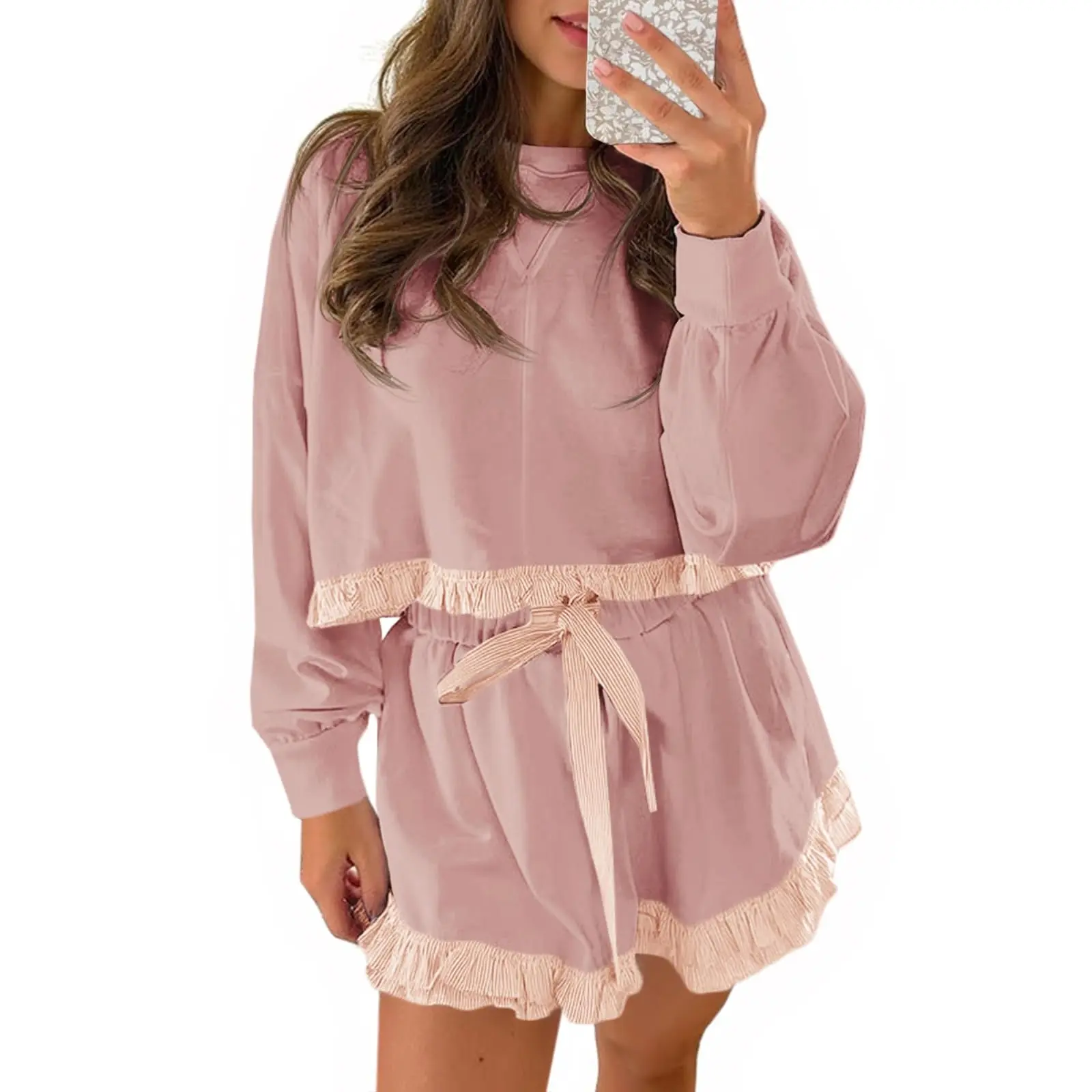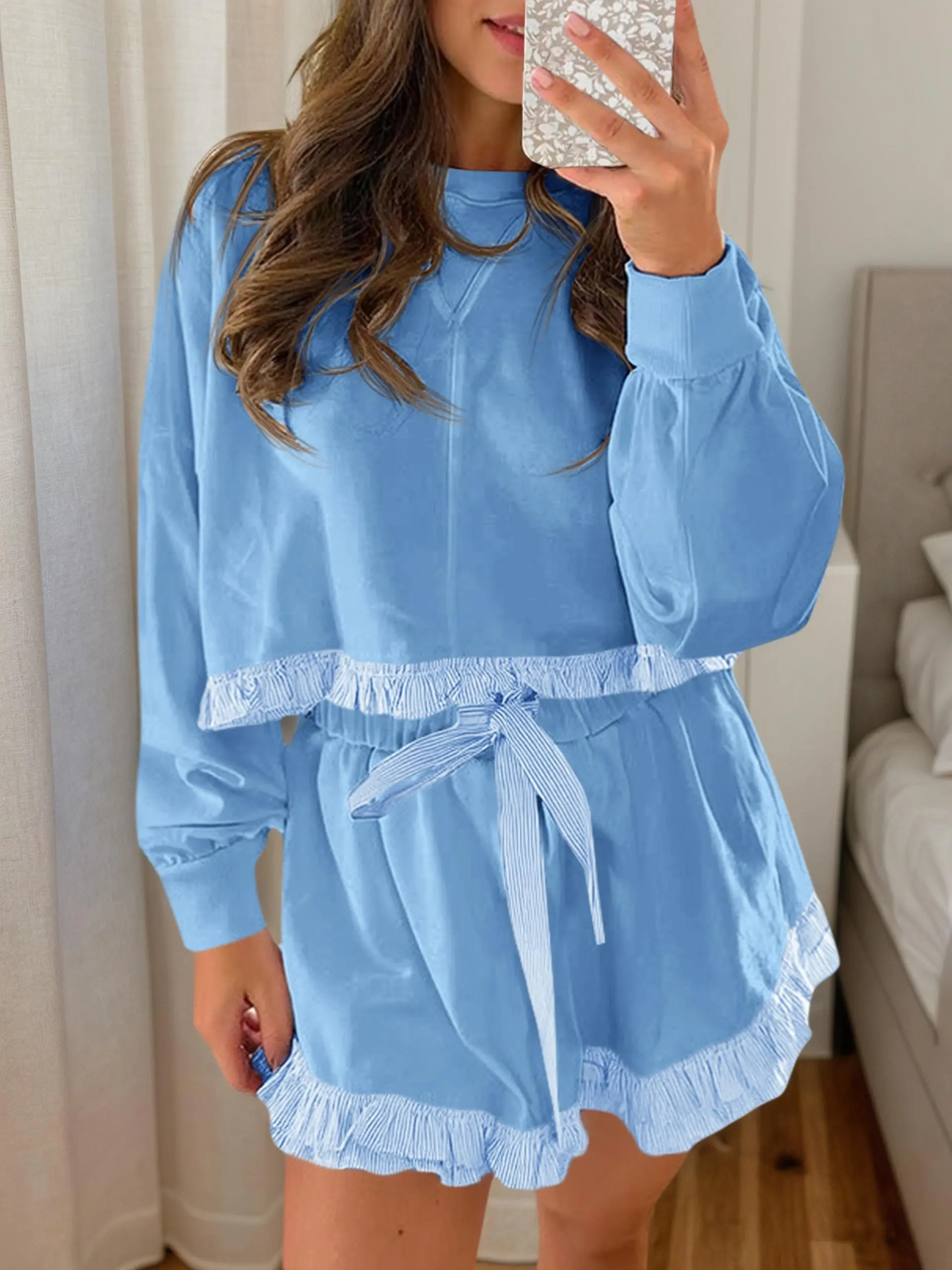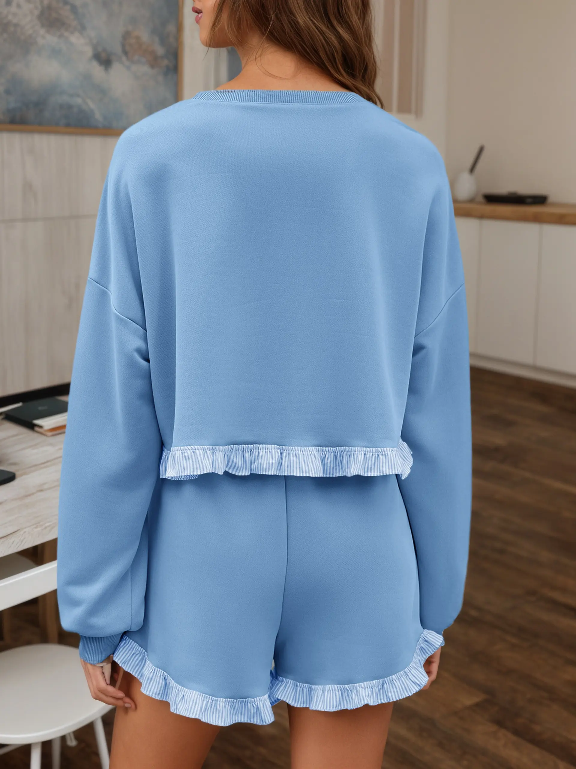 ✨ Exquisite Detail Decoration: Ruffled hems on both the top and shorts introduce a playful, feminine flair that elevates the outfit’s overall design.