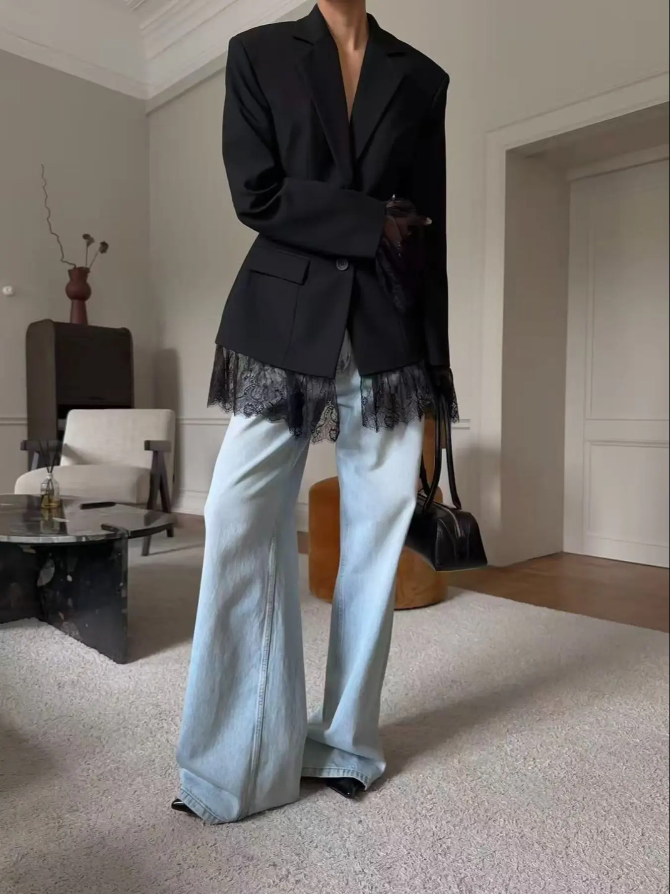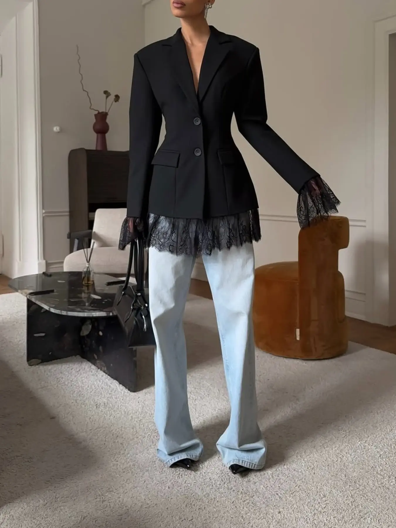 🔥 Black blazer with lace hem. Tailored & versatile for any look! #spotlightfinds #TikTokShopStockUp #tiktokshopblackfriday #tiktokshopholidayhaul #versatilefashion