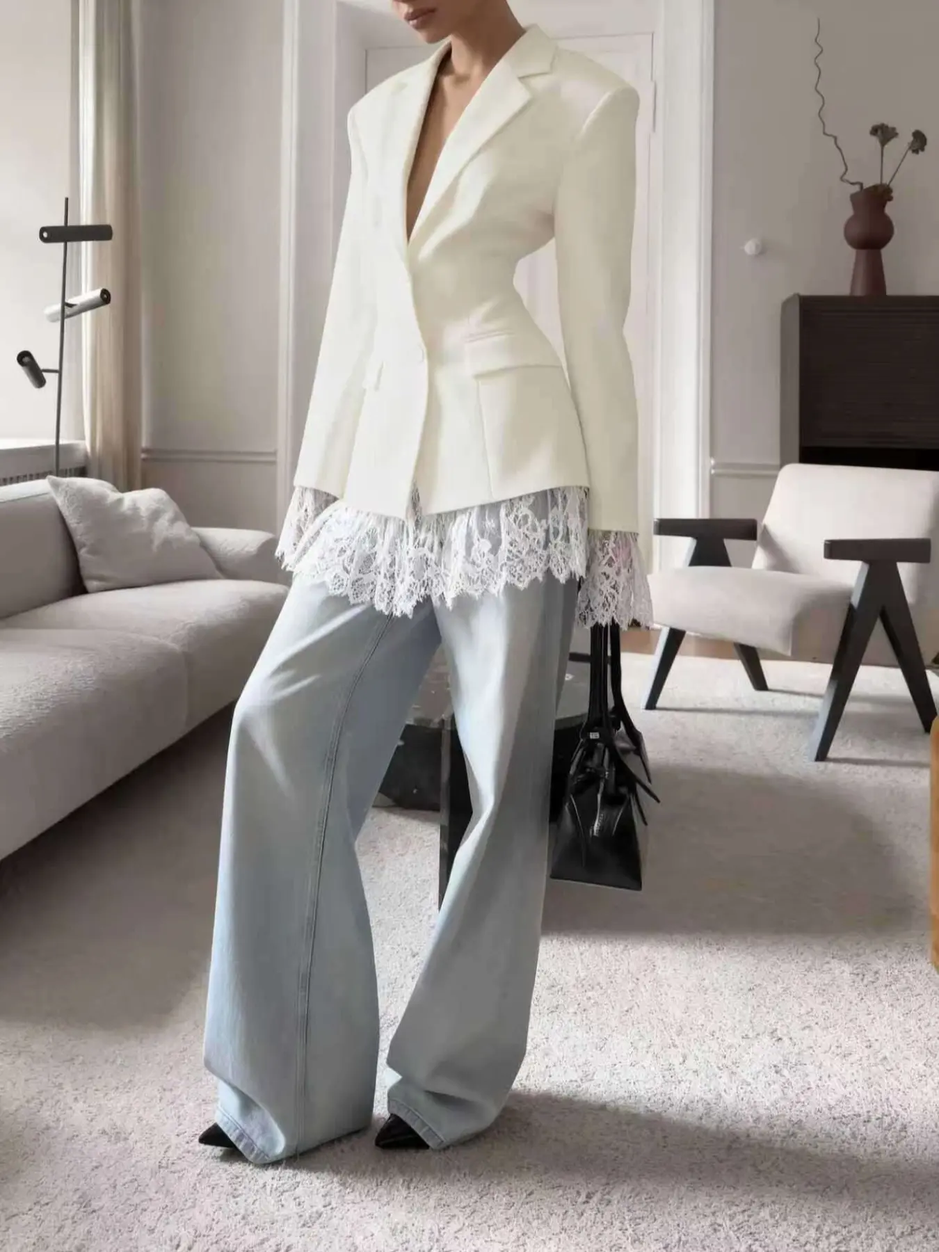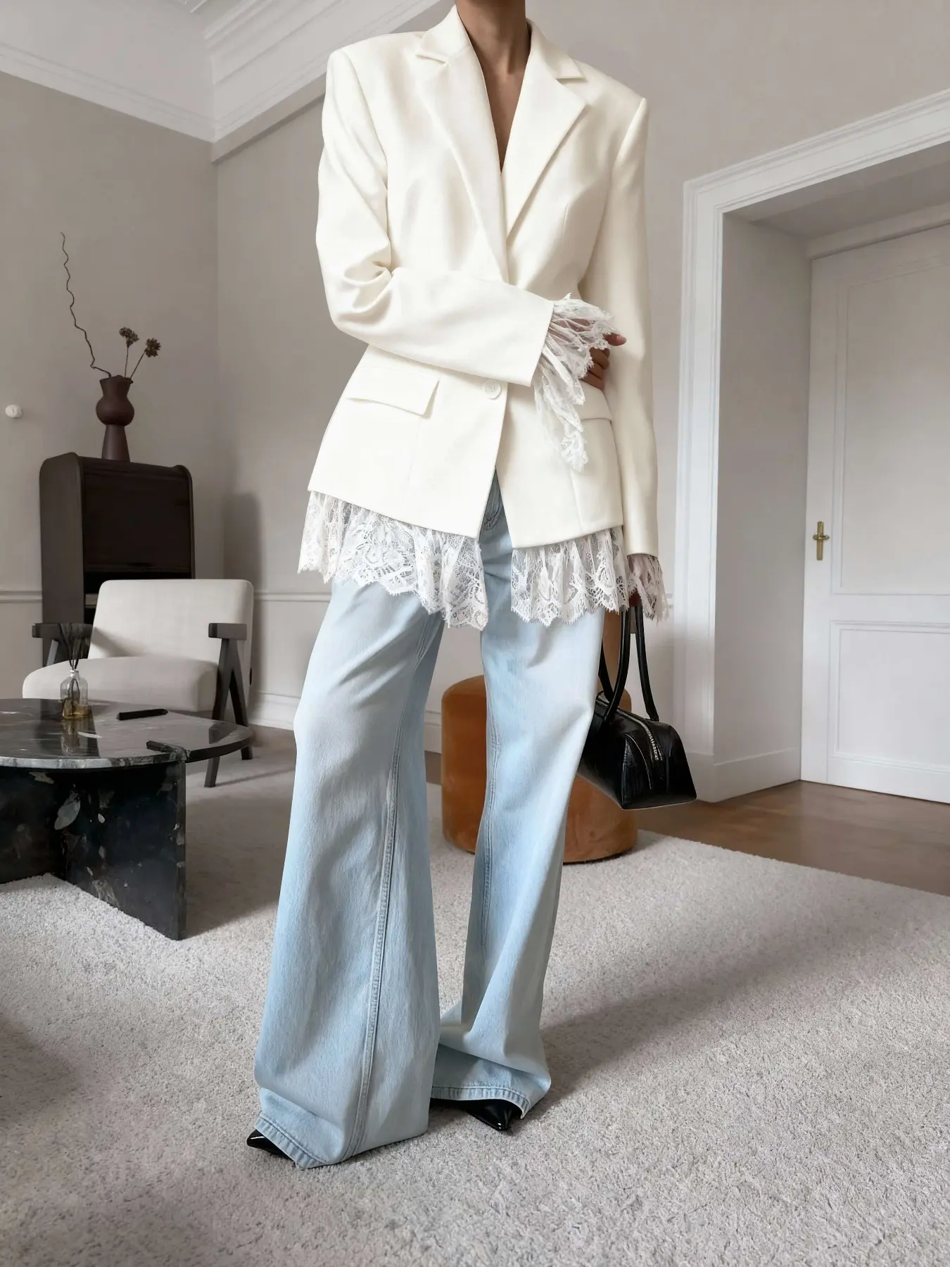 🤍 Ivory blazer with lace hem. Perfect for brunch or a wedding. #spotlightfinds #TikTokShopStockUp #tiktokshopblackfriday #tiktokshopholidayhaul #fallchic