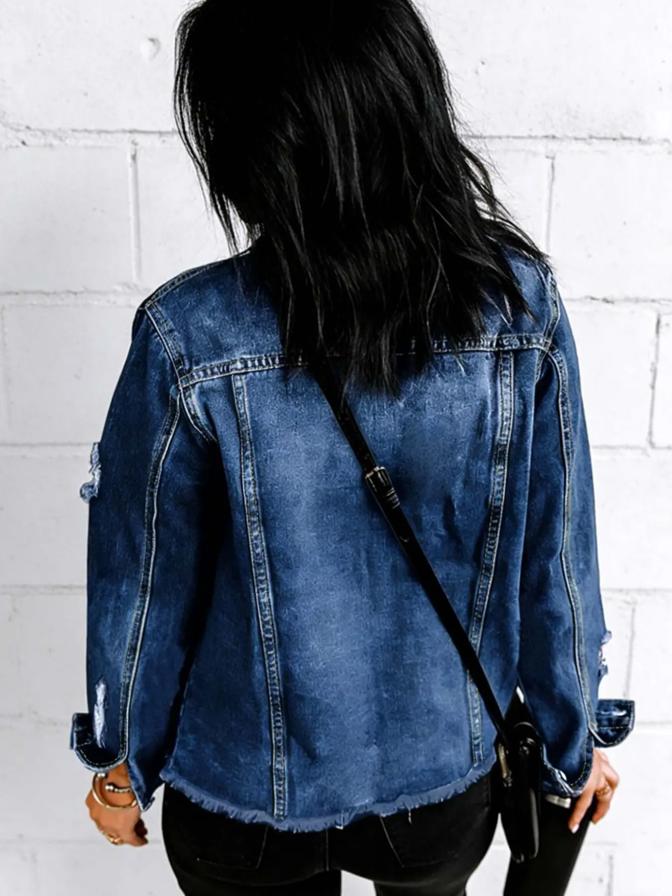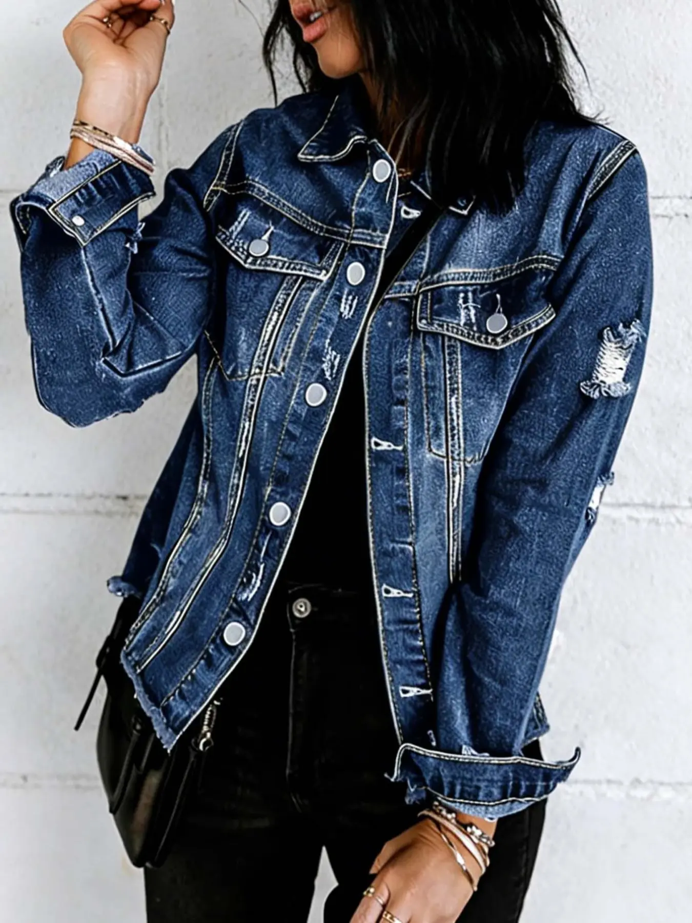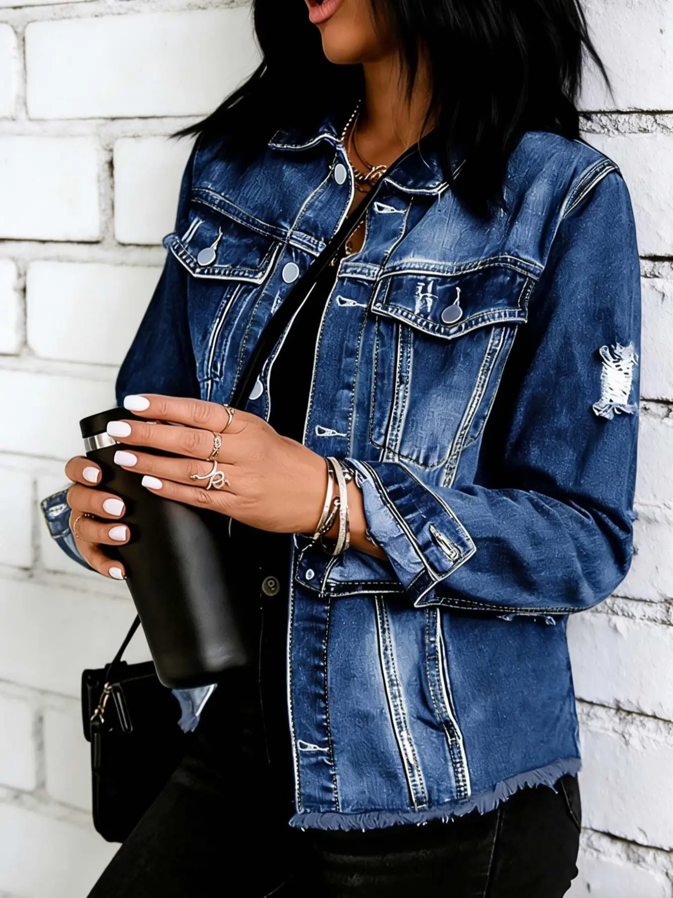 【Distressed Detailing】: Features unique distressed details that lend a modern, fashionable edge to this timeless piece.