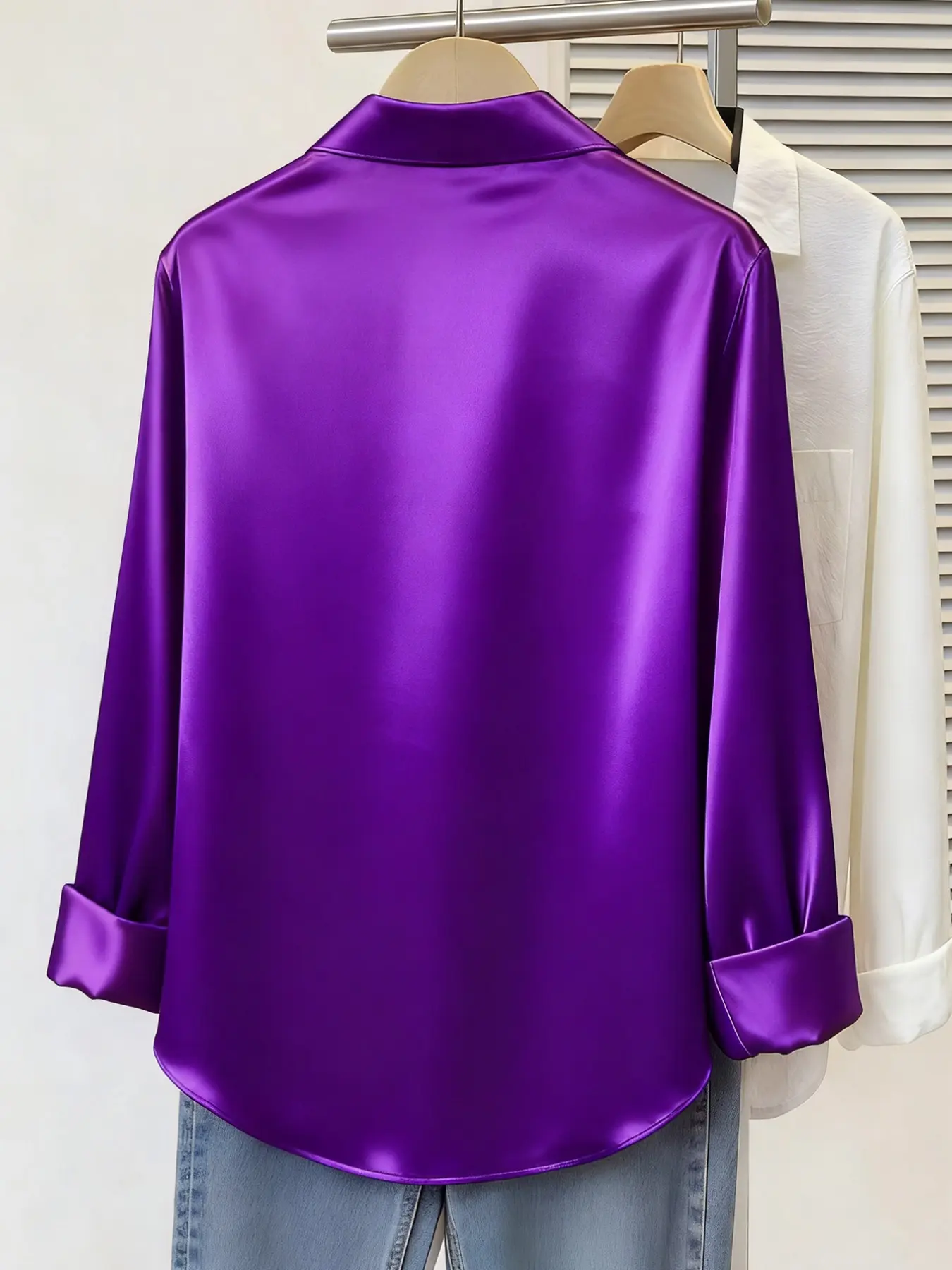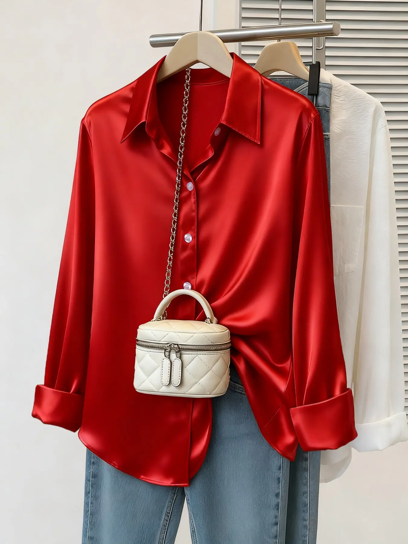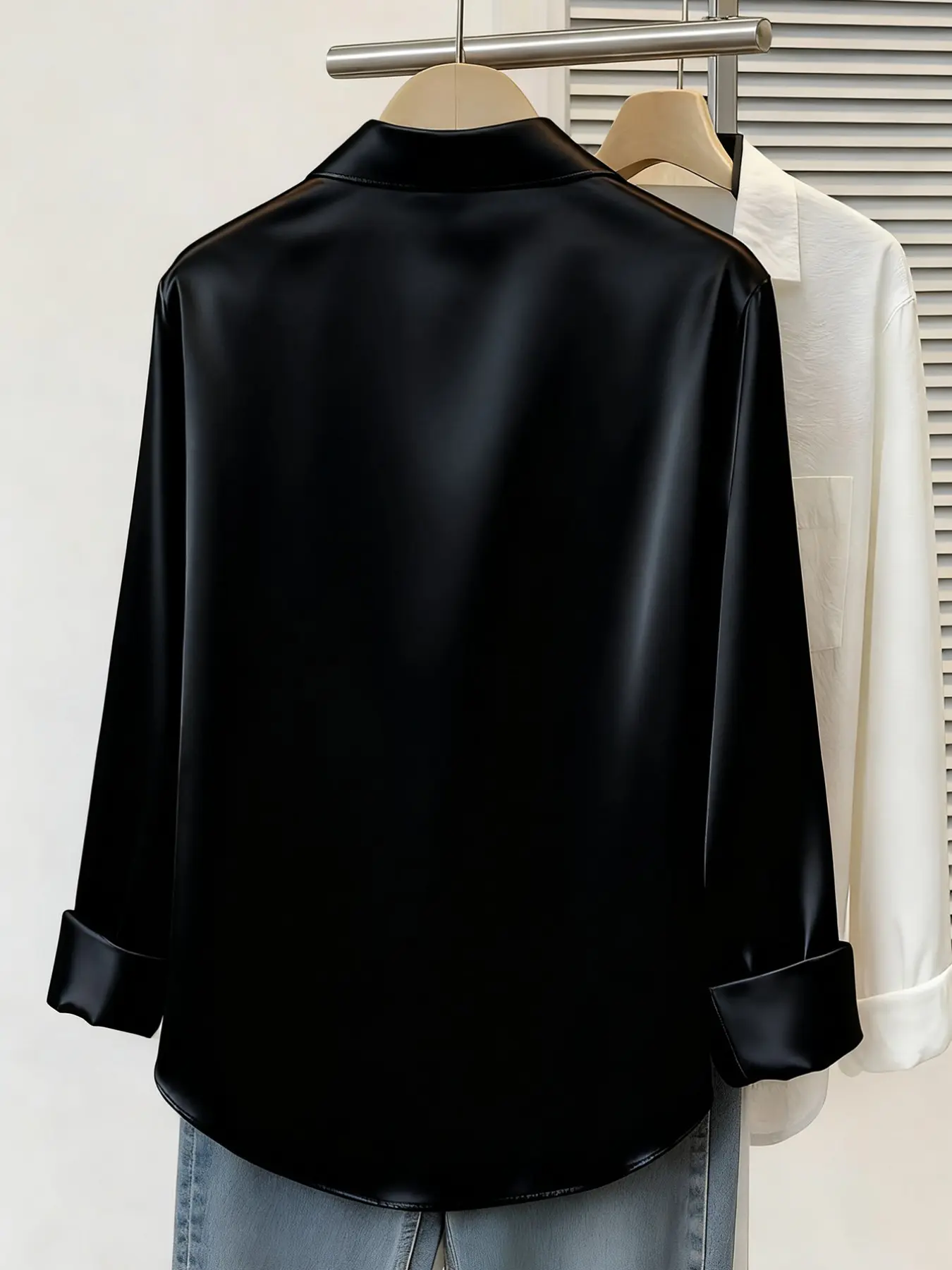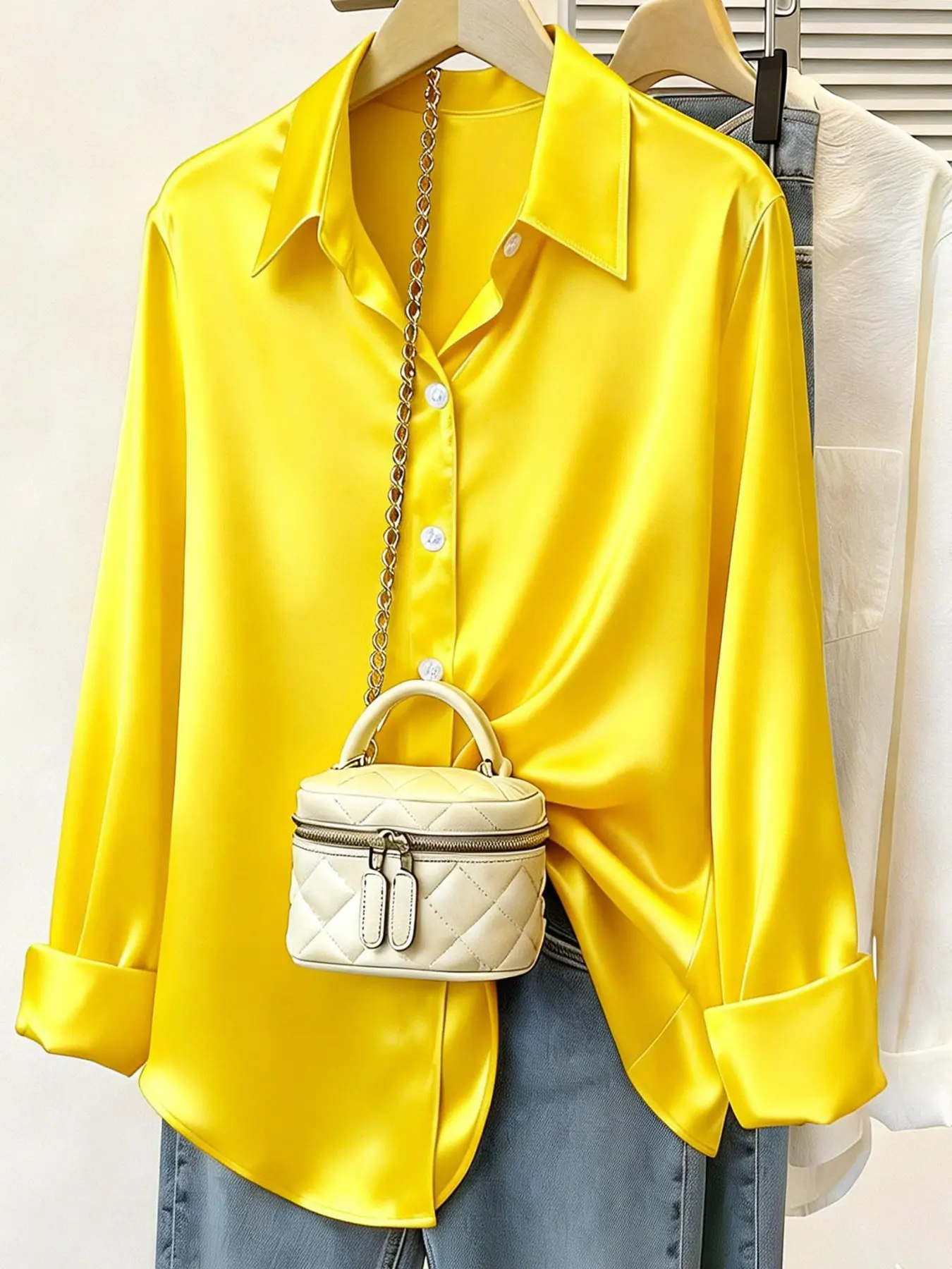 New Women's Clothing Arrival: All Seasons, Fashionable Glossy Satin Shirt, Casual and Versatile Fitted Button-Down Shirt