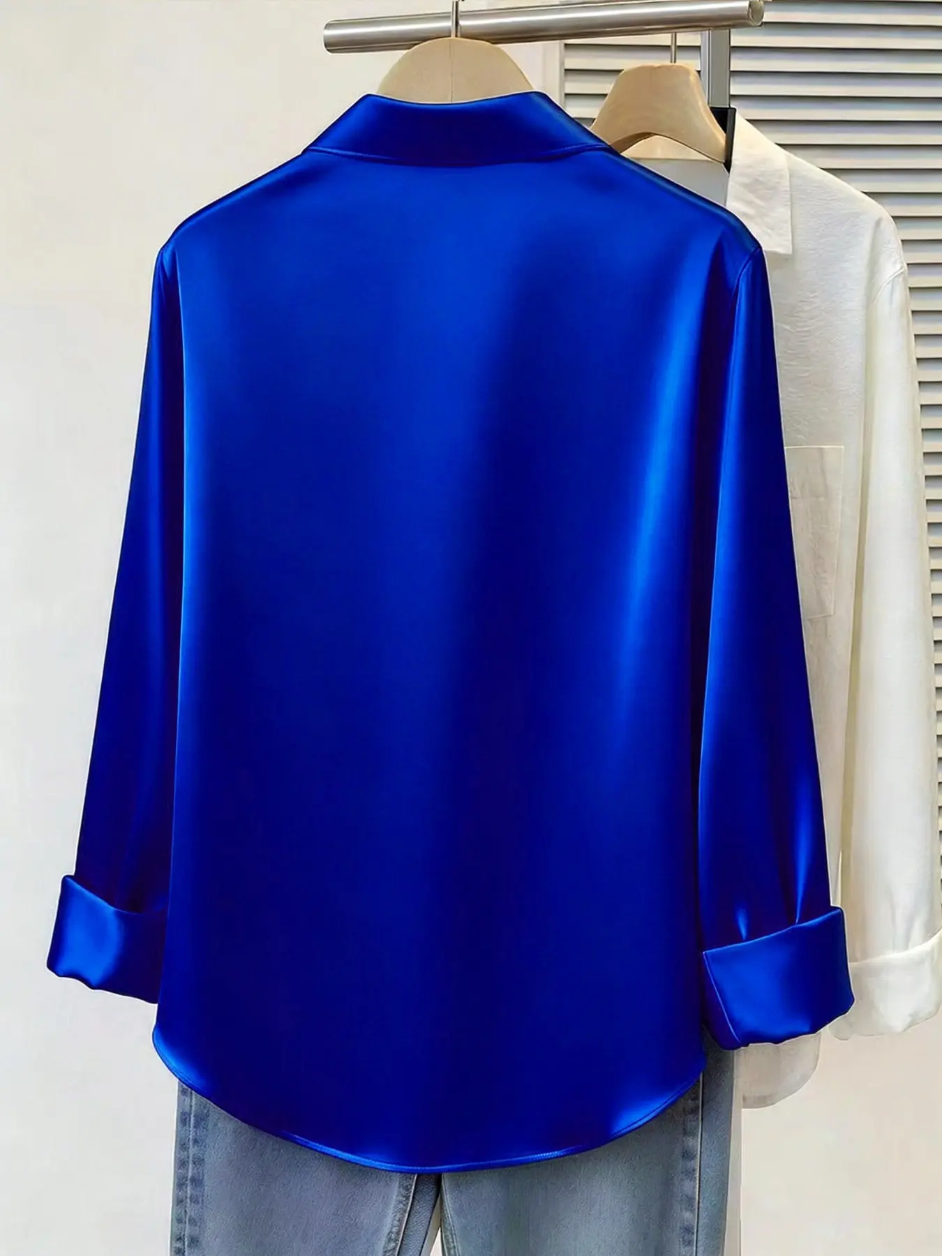 5. New Women's Clothing Arrival: All Seasons, Fashionable Glossy Satin Shirt, Casual and Versatile Fitted Button-Down Shirt