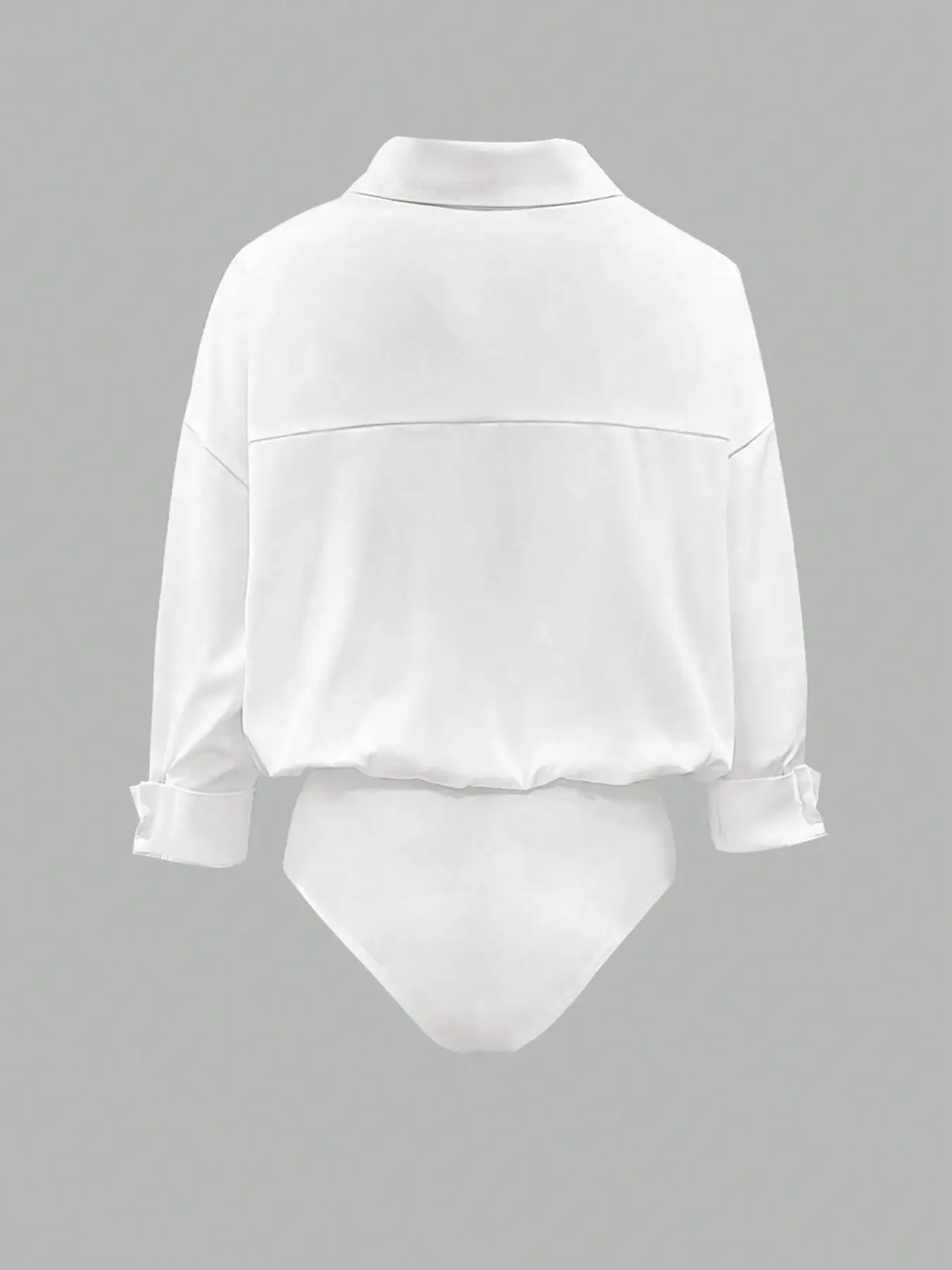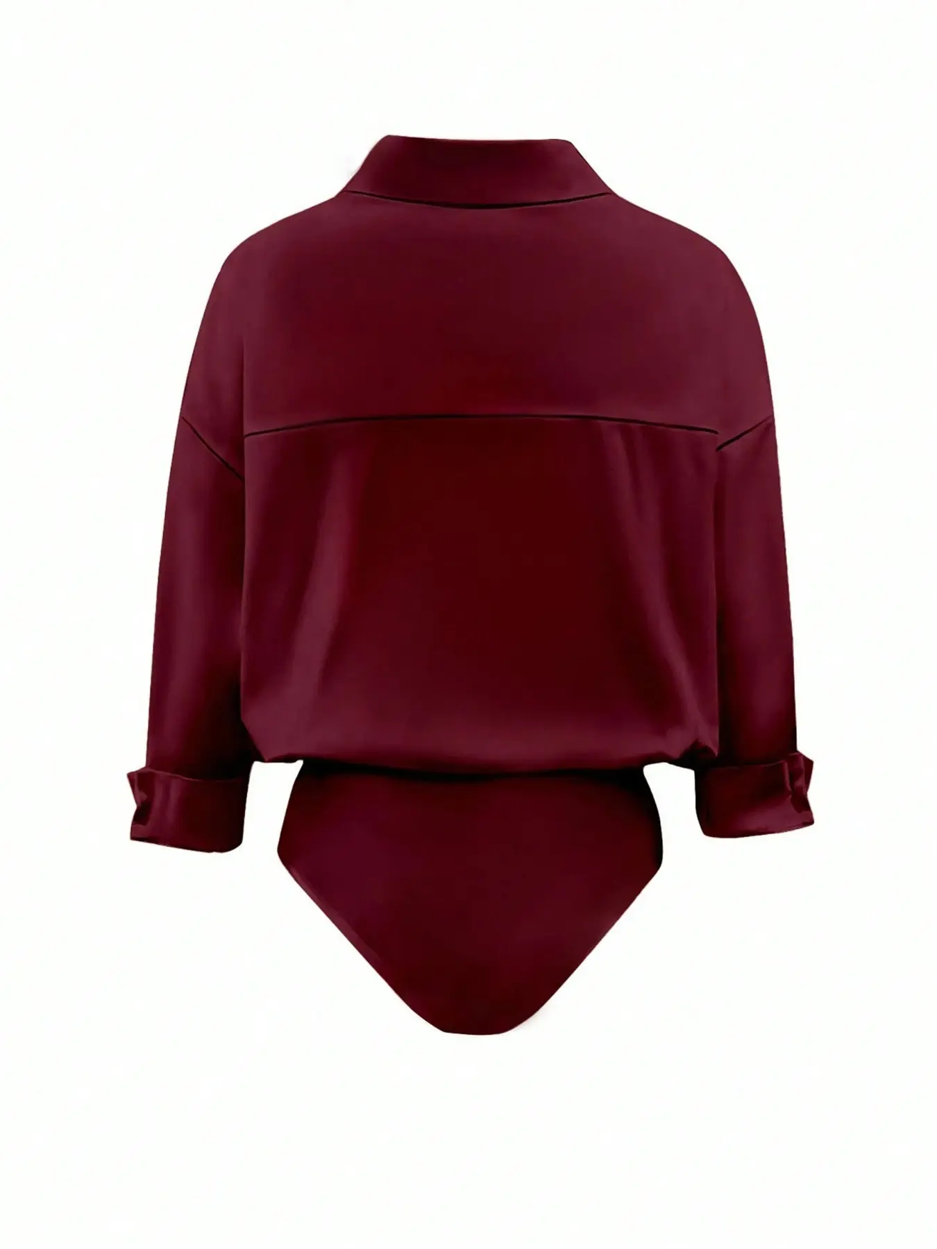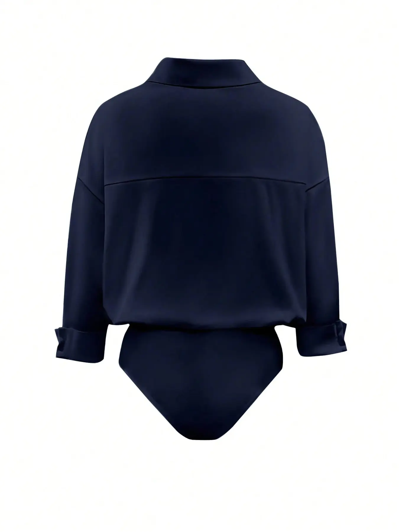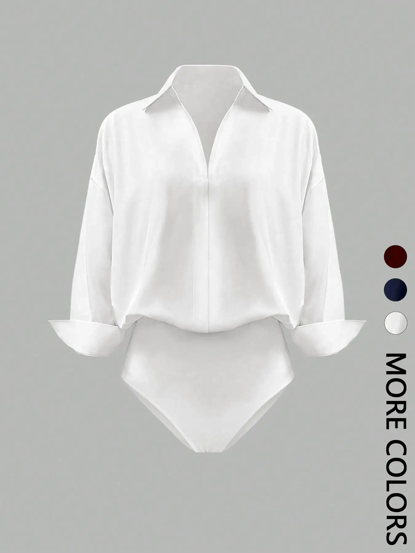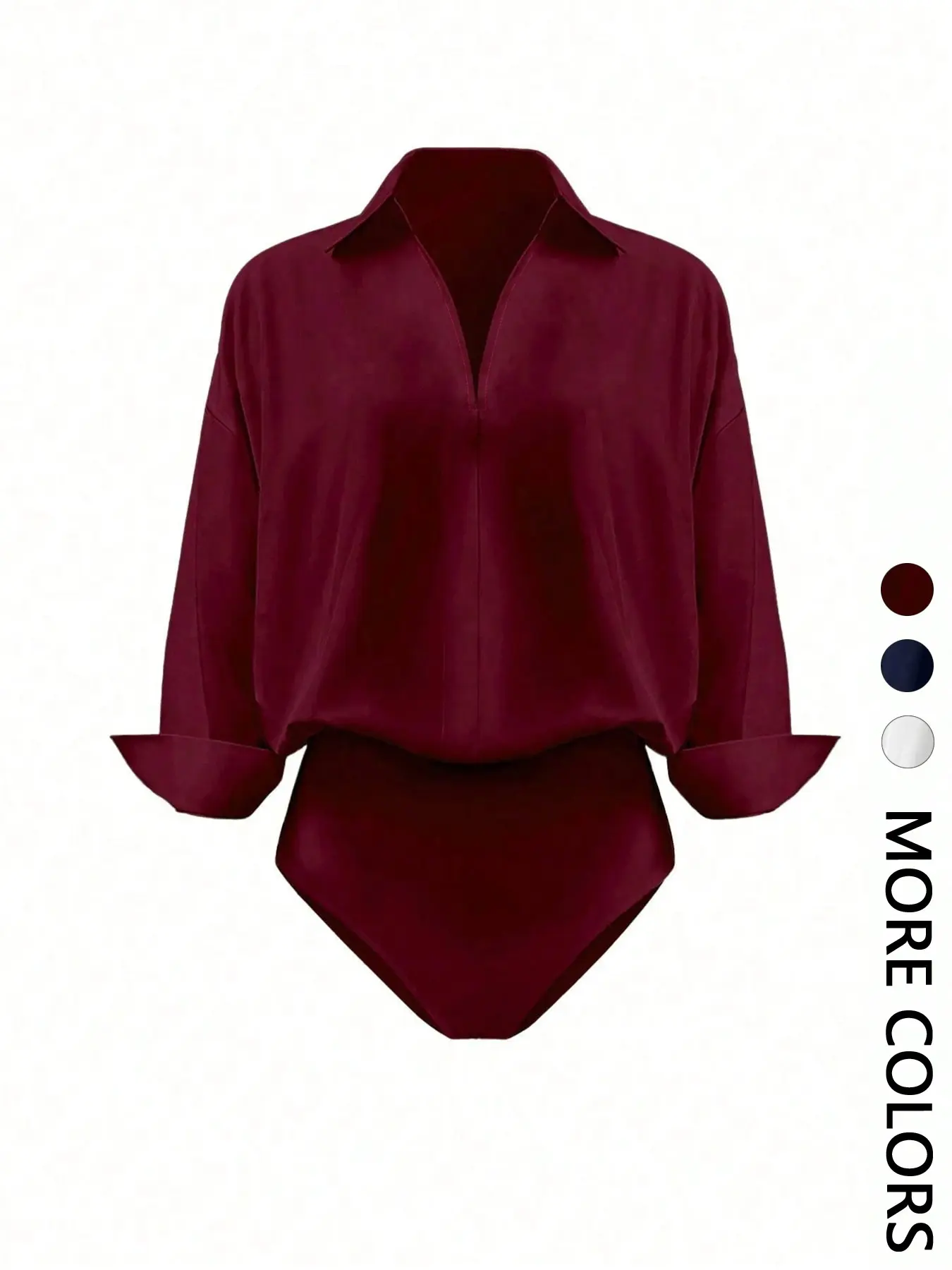 Valentine's Day Women's Casual Solid Color body suit Jumpsuit, Ladies' Relaxed Long Sleeve Lapel Fit One-Piece, Comfortable All-Season Wear