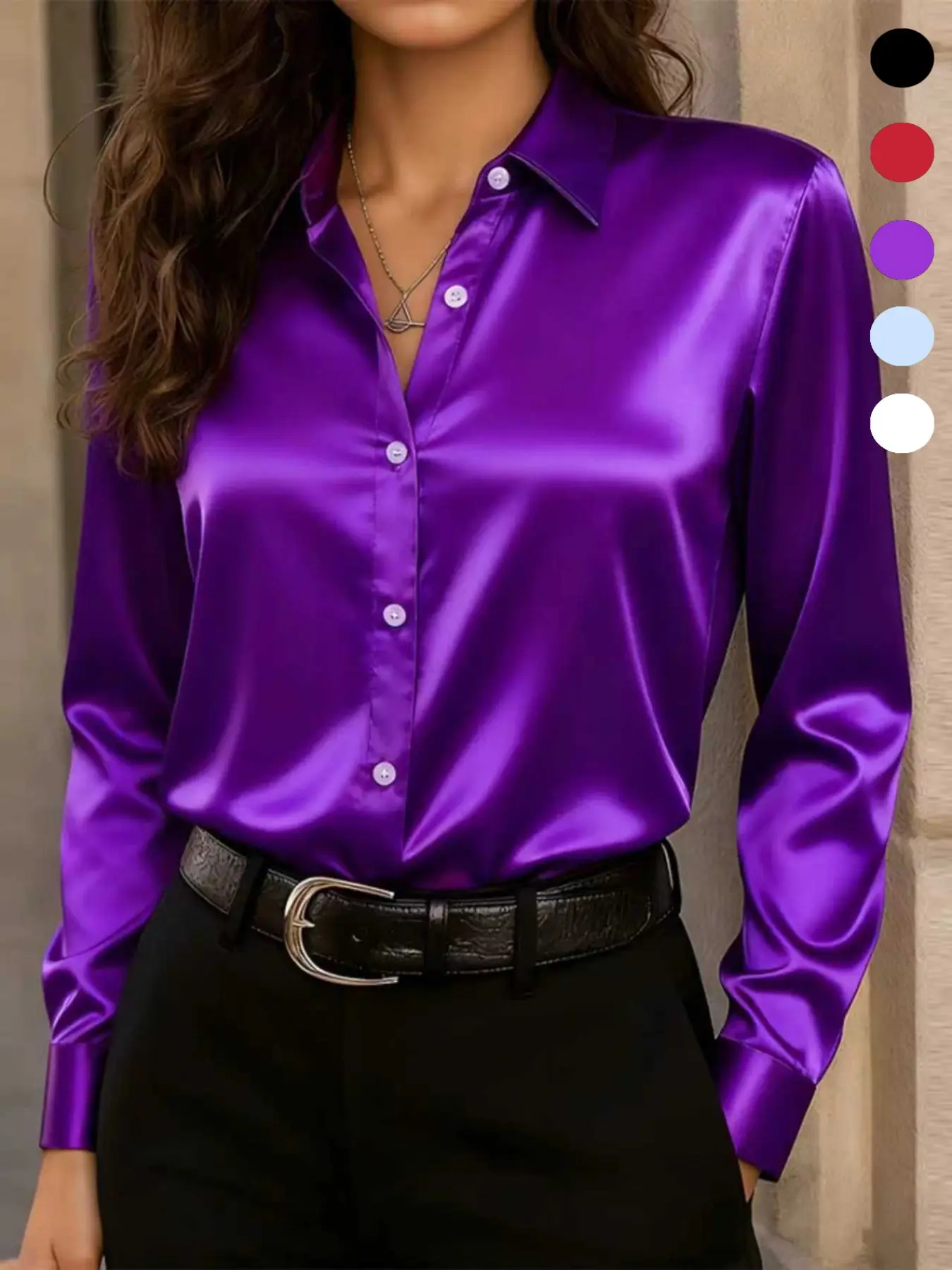 New Women's Clothing Arrival: All Seasons, Fashionable Glossy Satin Shirt, Blouse, Casual and Versatile Button-Down Shirt
