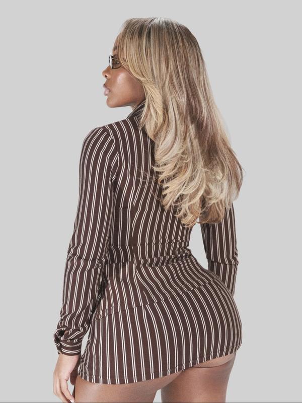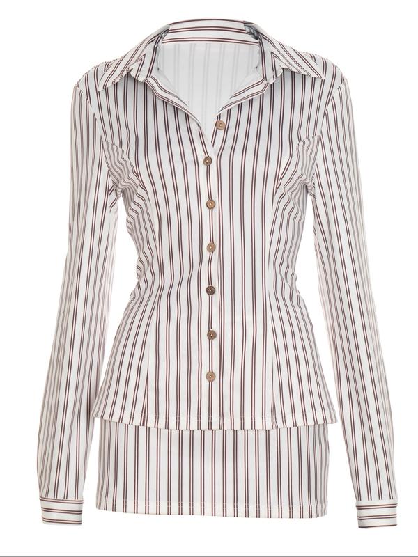 Women's Fashion Striped Button Long Sleeve Top + Slim Short Skirt Set, Casual Comfortable Spring & Fall, Daily Wear