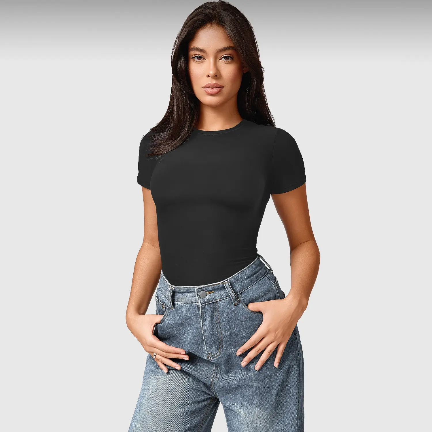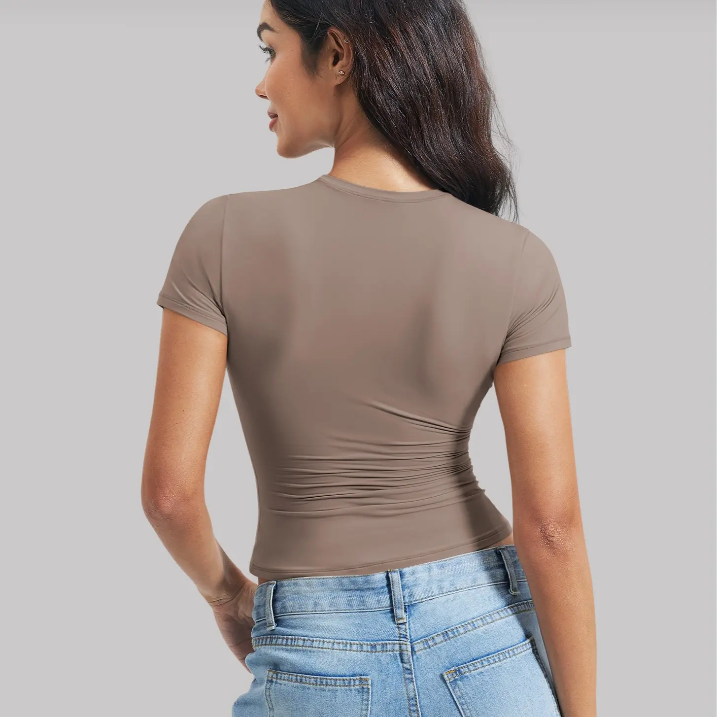 The top's buttery soft feel and fitted design make it a go-to choice for various activities. Its stretchy material ensures you look fantastic without being see-through. Embrace the Y2K trend with this fashionable and functional top. Stay stylish and comfortable in every move.