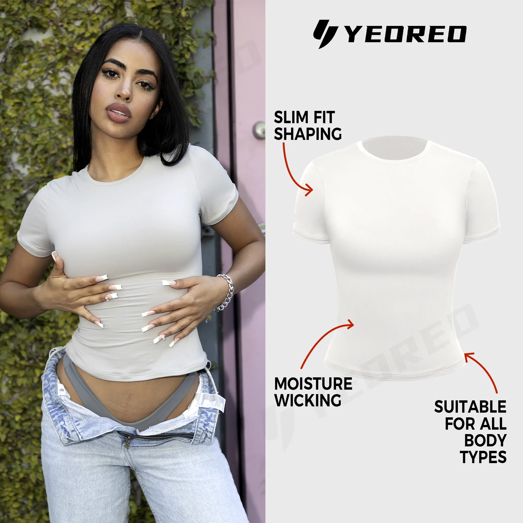 YEOREO Women Fitted Workout Tops