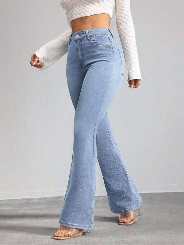 Gilipur Y2k Women's High Waist Flare Leg Jeans, Casual Button Fly Pocket Design Bell Bottom Denim, Women's Bottoms for Daily Wear, Fashionable and Versatile Women's Everyday