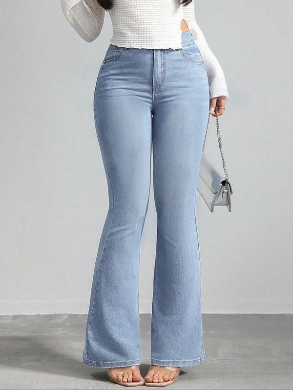 Gilipur Y2k Women's High Waist Flare Leg Jeans, Casual Button Fly Pocket Design Bell Bottom Denim, Women's Bottoms for Daily Wear, Fashionable and Versatile Women's Everyday#foryoupage #fypシ゚viral #great #product #foryoupage