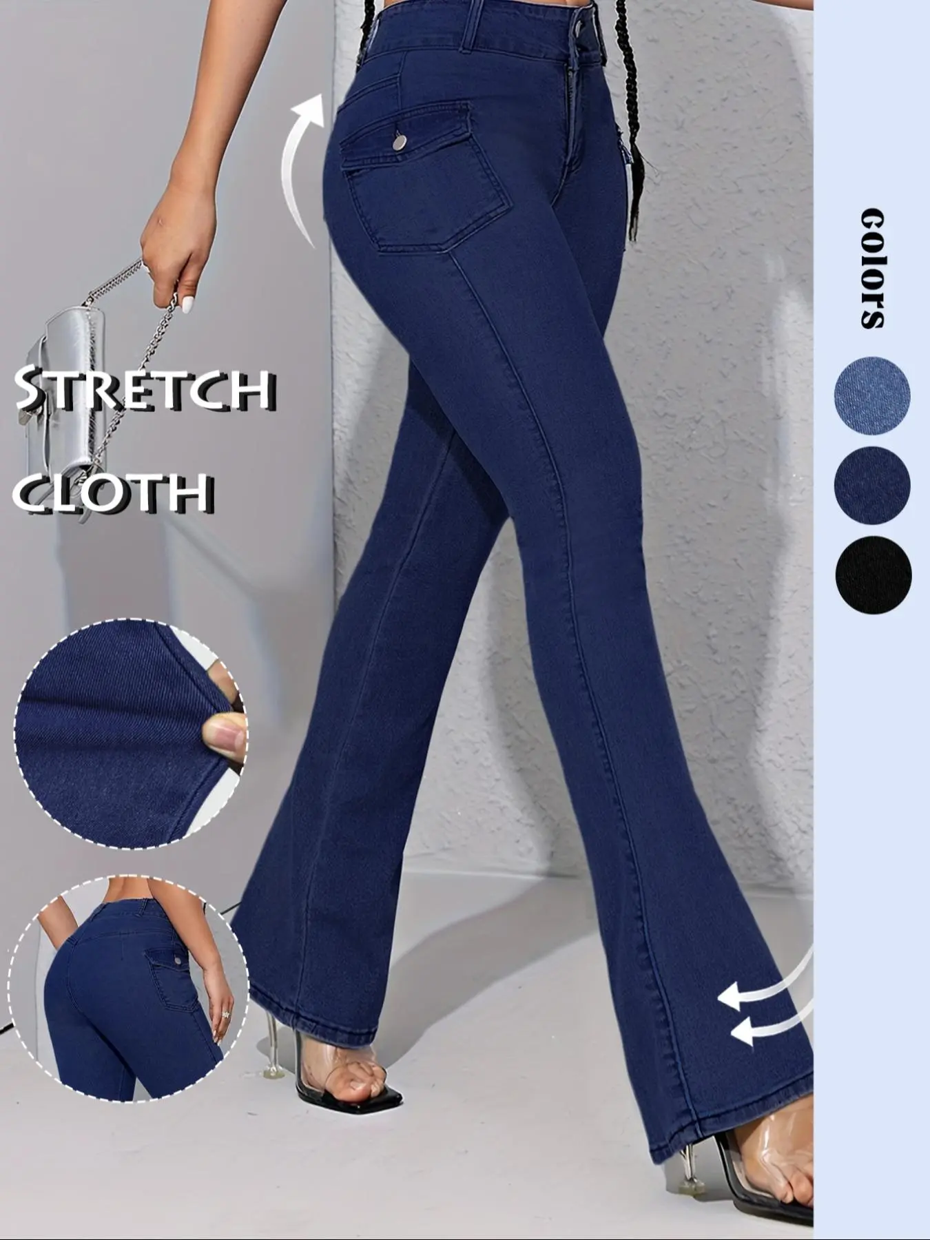 Super stretchy and I love the pocket design on the hips!  #flarepants #flarejeans #jeans #denim #stretchyjeans #stretchydenim