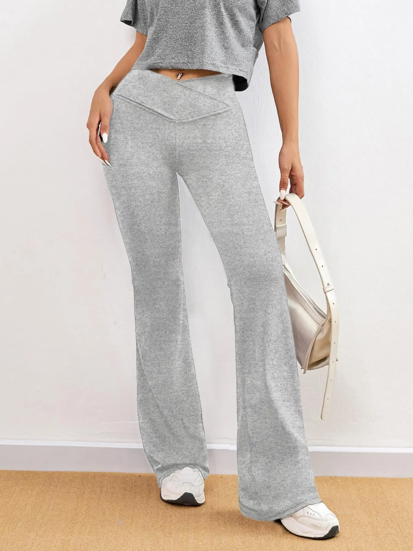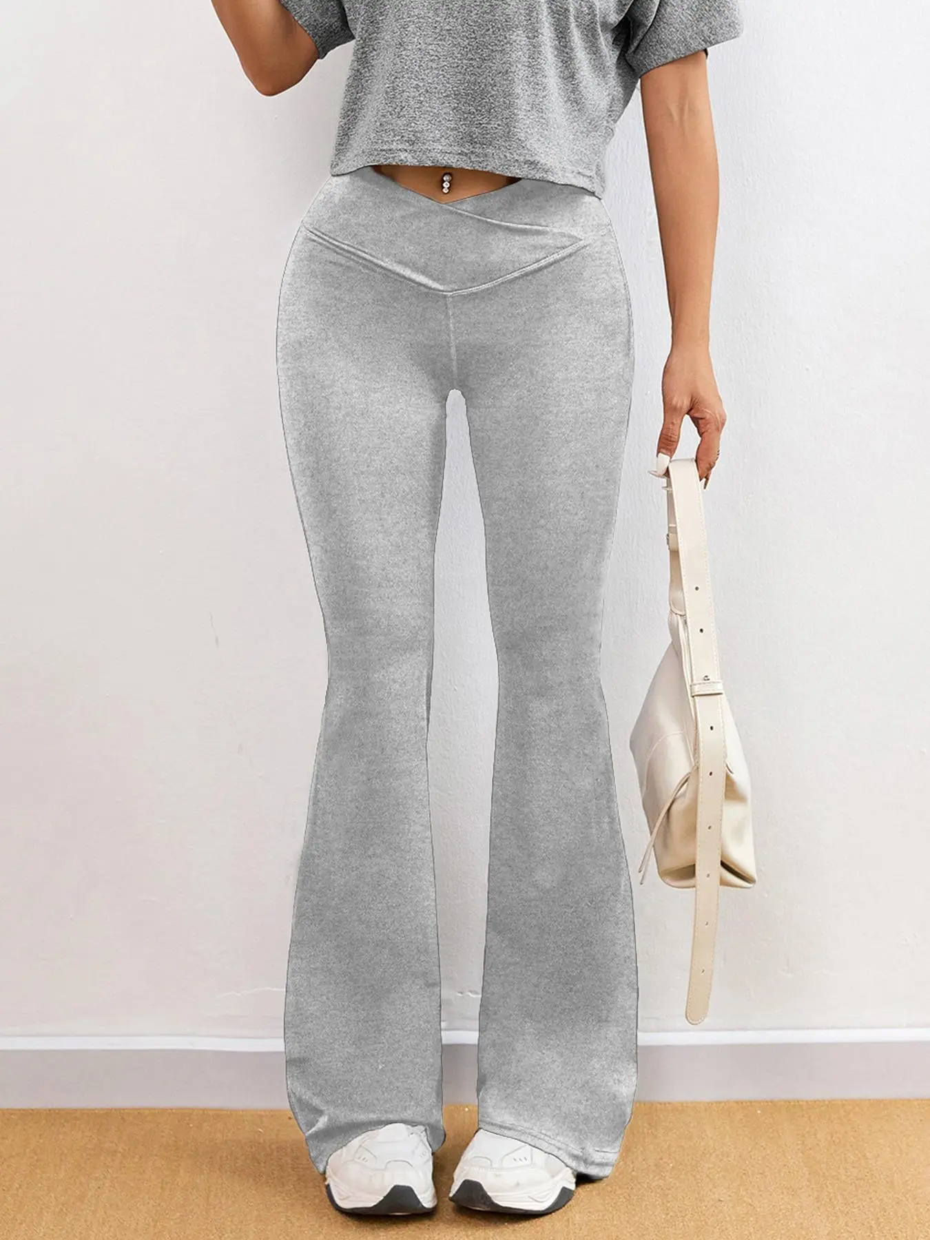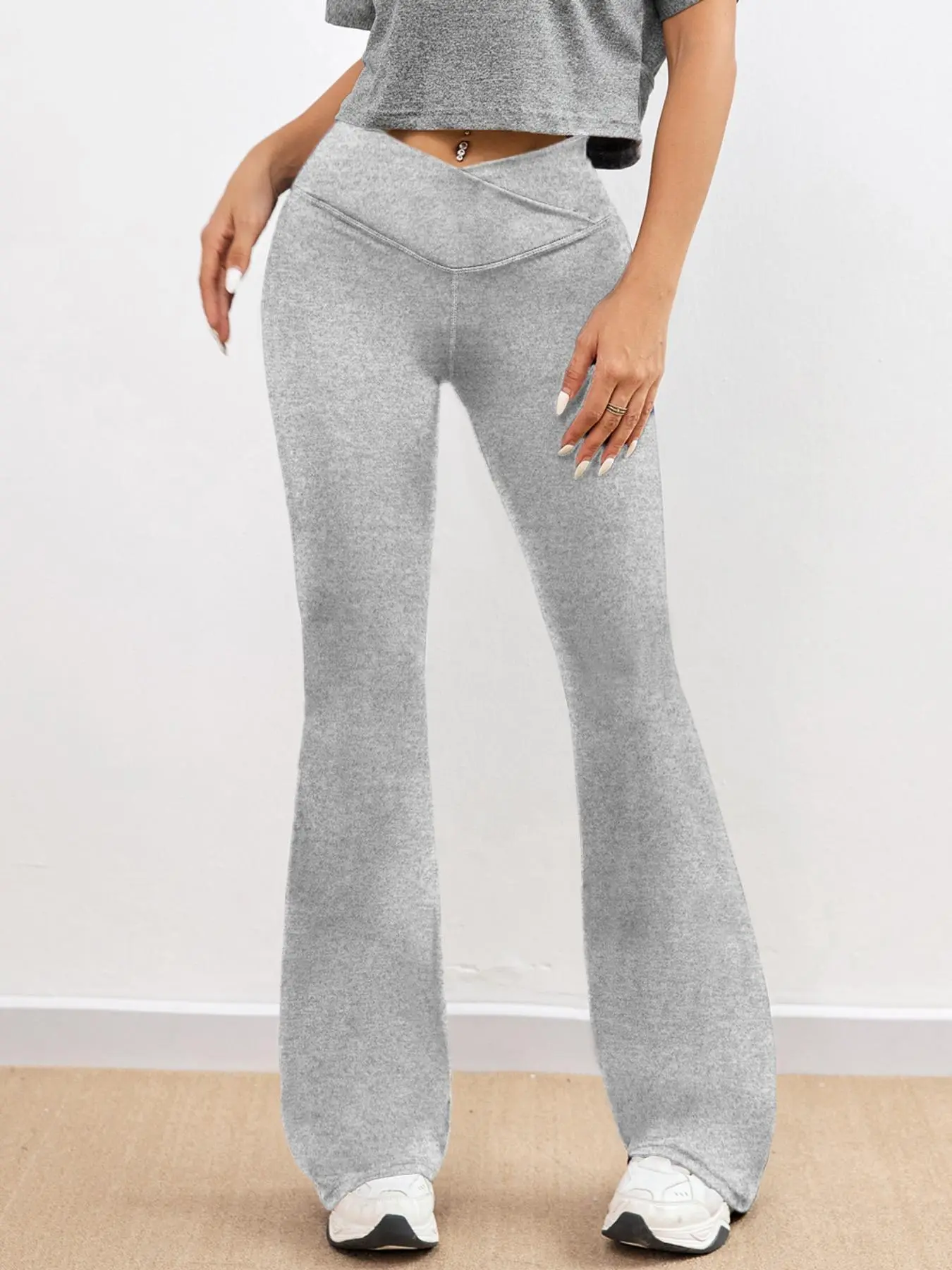 Women's Solid Flare Leg Sports Leggings, Comfortable & Stylish Design, Ideal for Yoga, Gym, Workouts, Daily Wear #flaredleggings #relaxedfitwomensset #gymreapersleggings #nofrontseamleggings #highriseleggings #athleticwearwomen #womensjoggers #aerieleggings #womensathleisure #butterysoftleggings