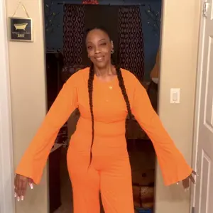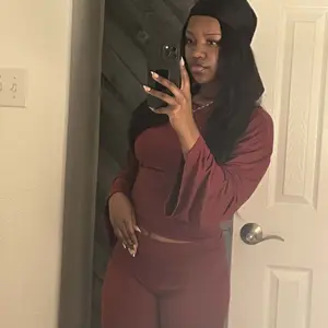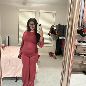 I actually didn’t wanna take it off sooo comfy like literally I might just get another set I’m wearing a large but she’s stretchy so I could’ve went down a size I’m 5’7 230 pounds for reference and the pants go DOWWNNN to my feet gurl get chu one of deez QUICKLY and I love the sleeves!!