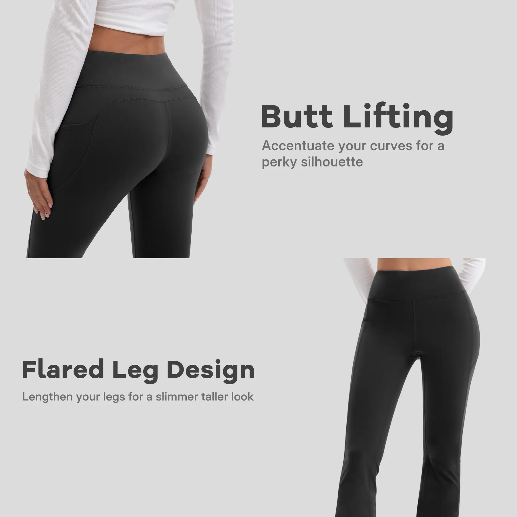 ·3D contoured butt panel lifts and sculpts curves, creating a flattering silhouette.