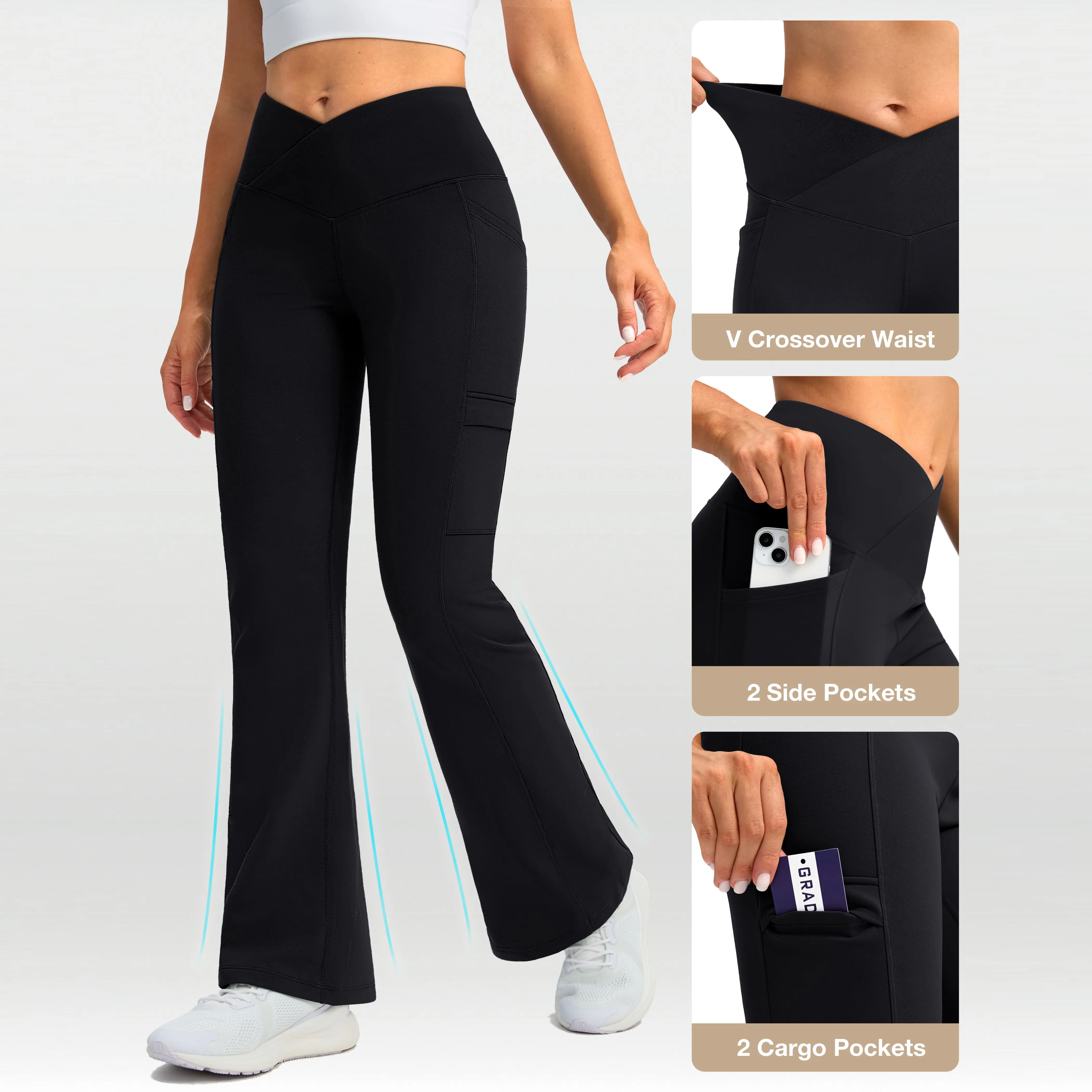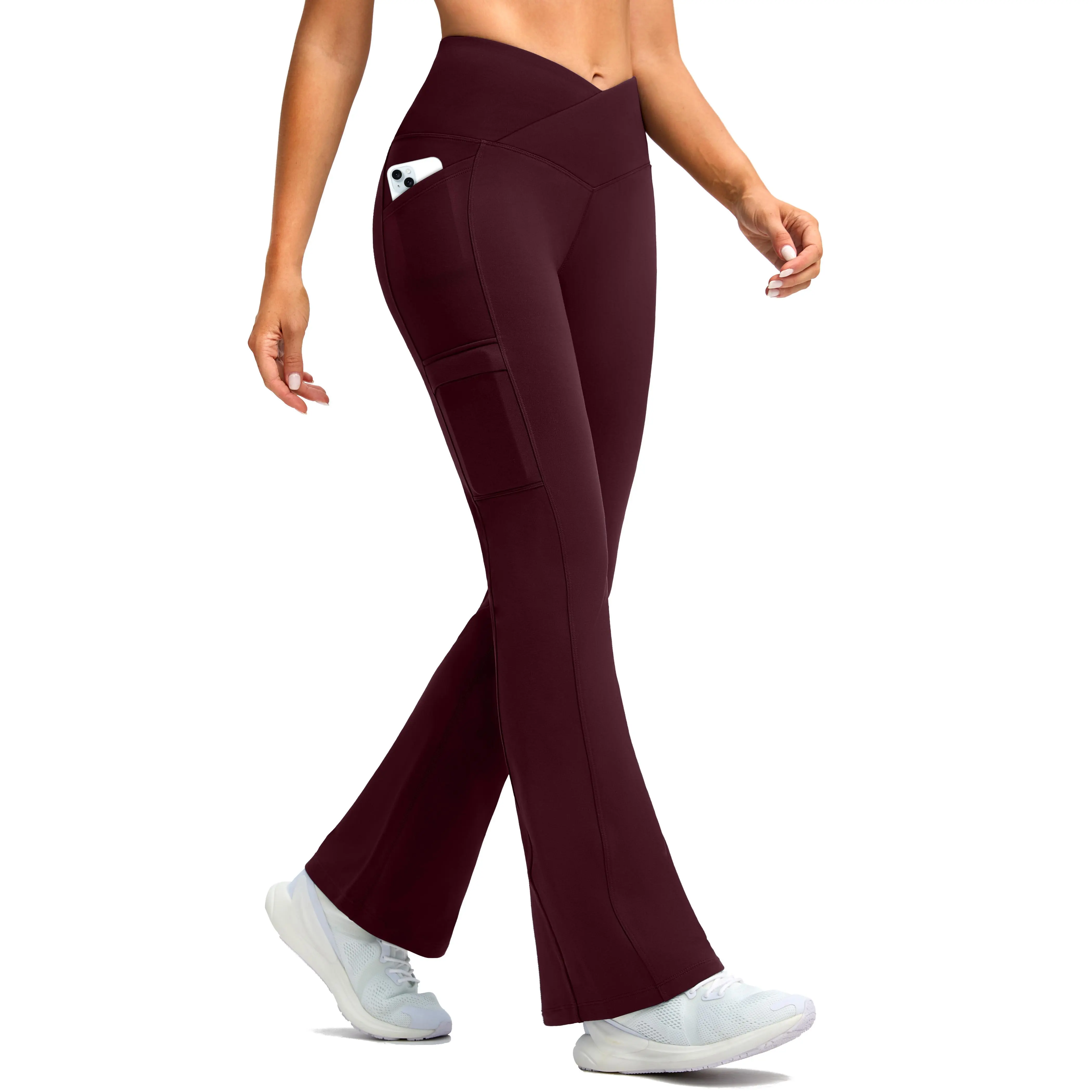 ·SLIGHTLY FLARE & CROSS-WAIST: 29"/31" Inseam fleece leggings with V crossover waist making it more stylish, flattering. Slightly flared pants shape visually slims the silhouette and fits any body type