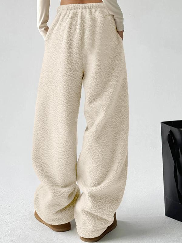Women's Fall Winter Fleece Loose Long Pants, Casual Sporty Leisure Trousers, Comfortable and Stylish Ladies' Clothing, Bottoms