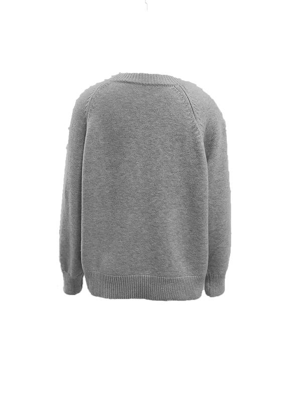 Women's Embroidered Round Neck Long Sleeve Casual Knitted Pullover Sweater, Stylish and Comfortable, Perfect for Everyday Wear