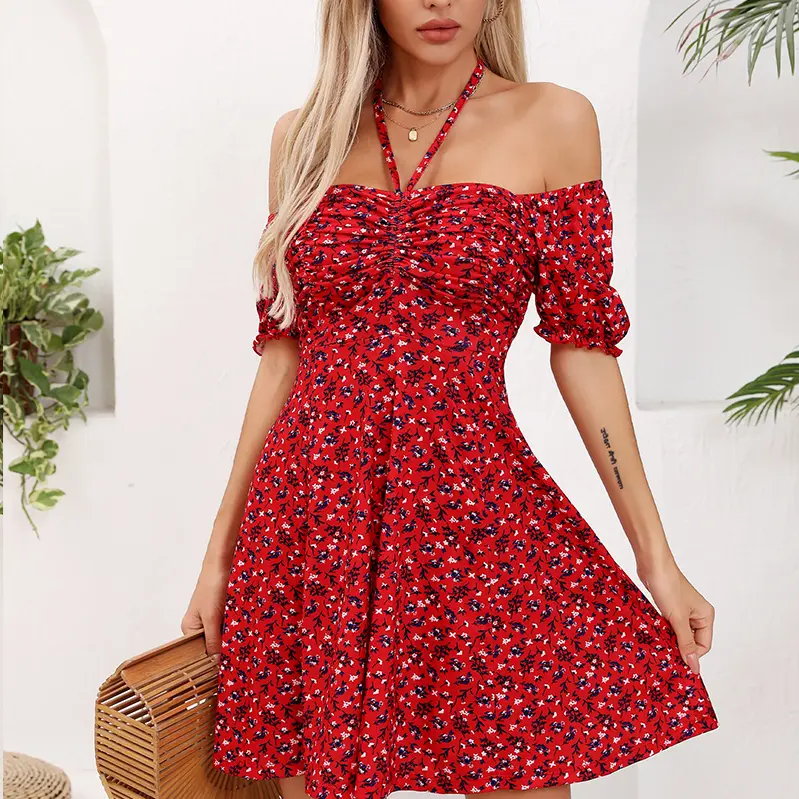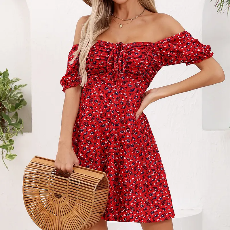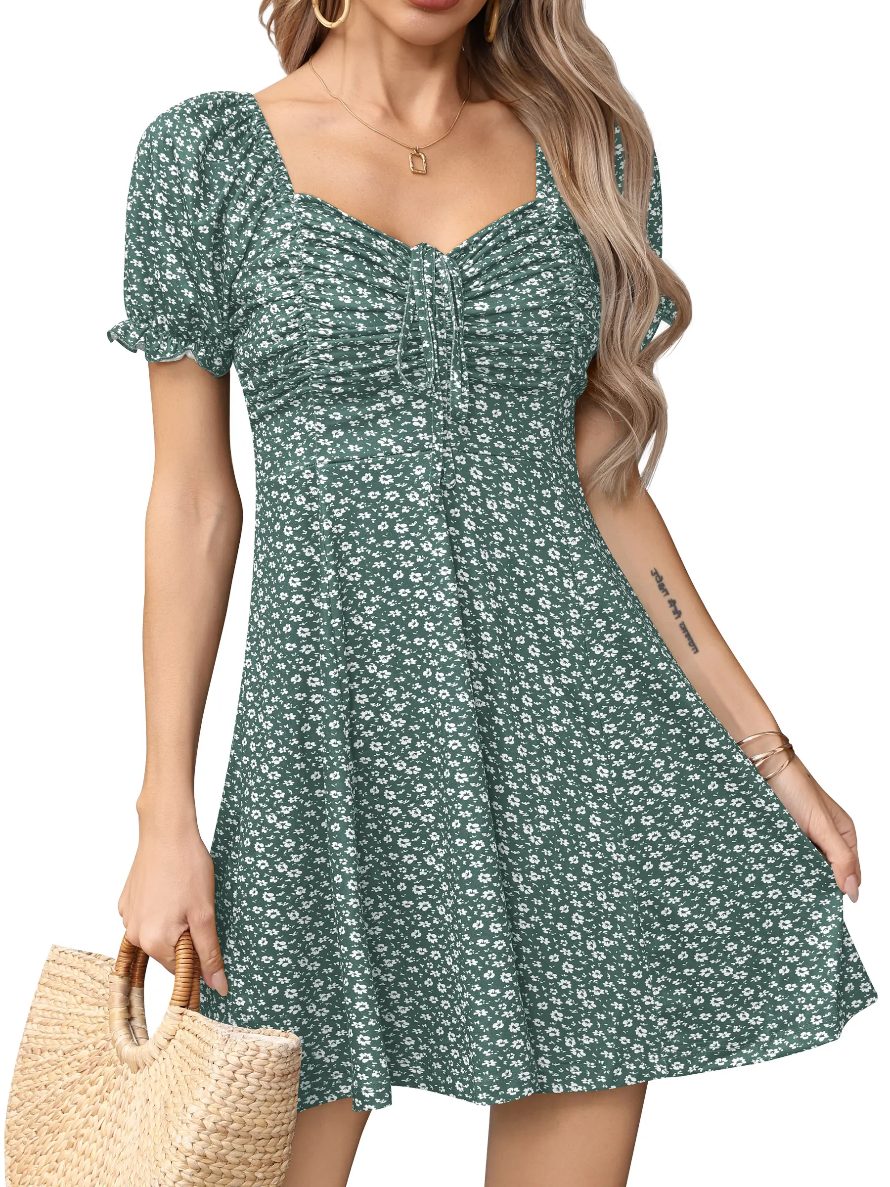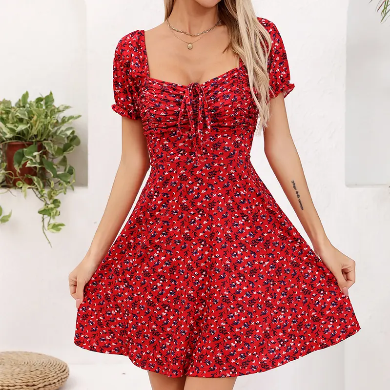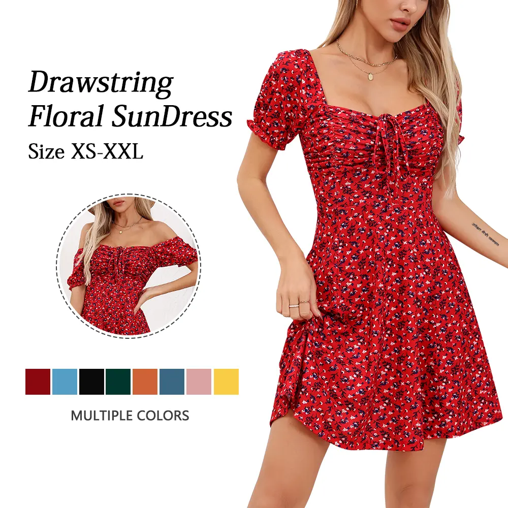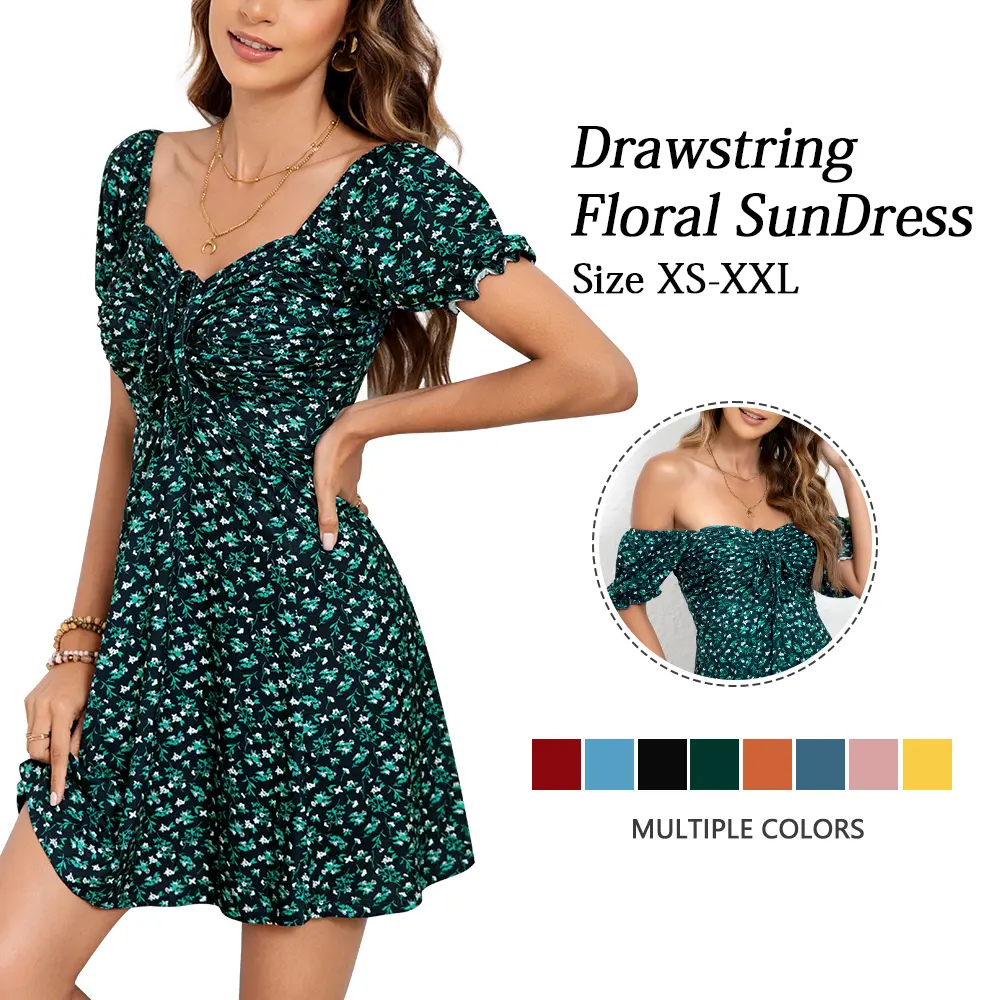 Women's Puff Short Sleeve Fit and Flare Casual Drawstring Floral Mini Sun Dresses  Summer VacationWomen's Puff Short Sleeve Fit and Flare Casual Drawstring Floral Mini Sun Dresses  Summer VacationWomen's Puff Short Sleeve Fit and Flare Casual Drawstring Floral Mini Sun Dresses  Summer Vacation