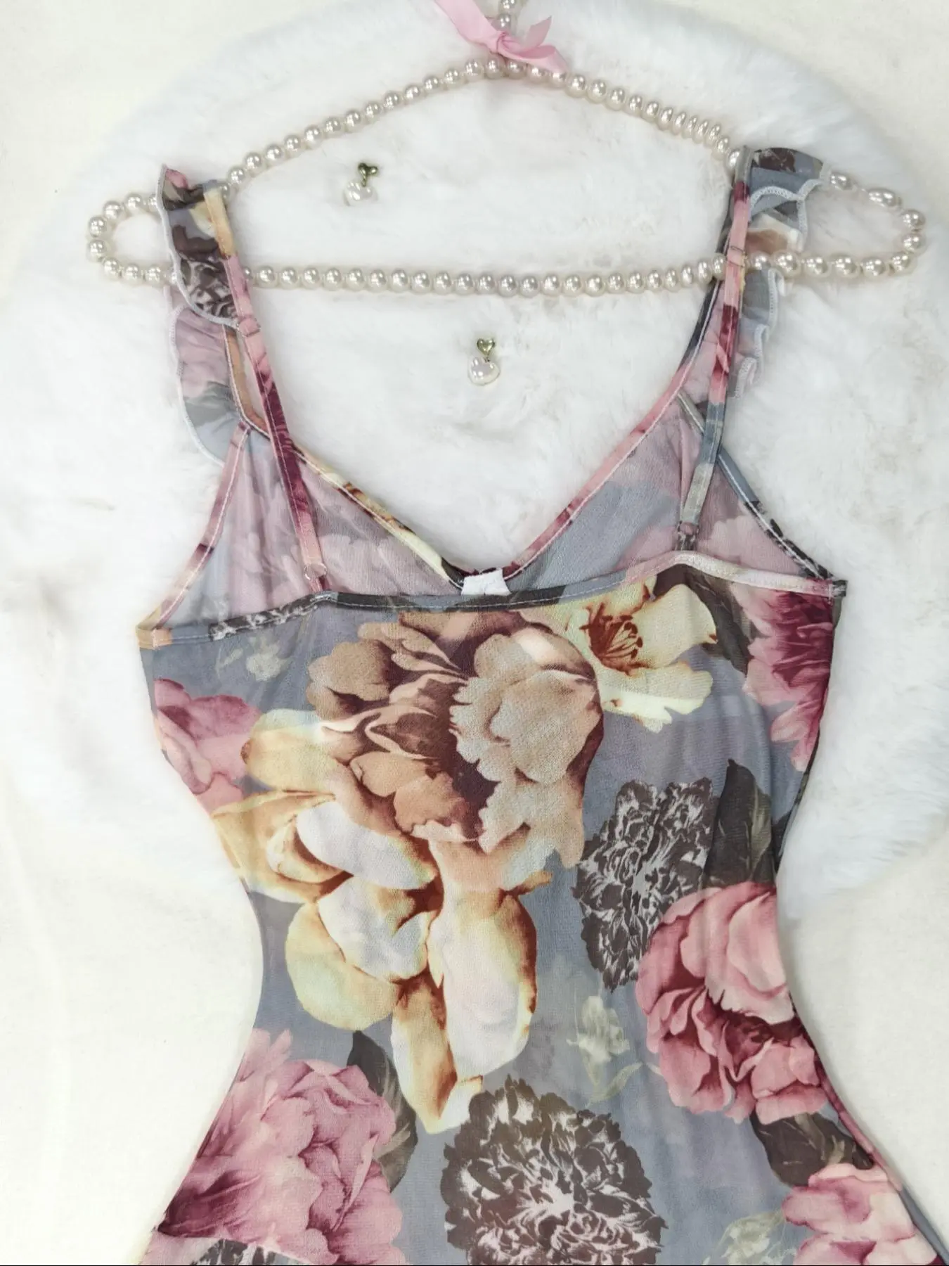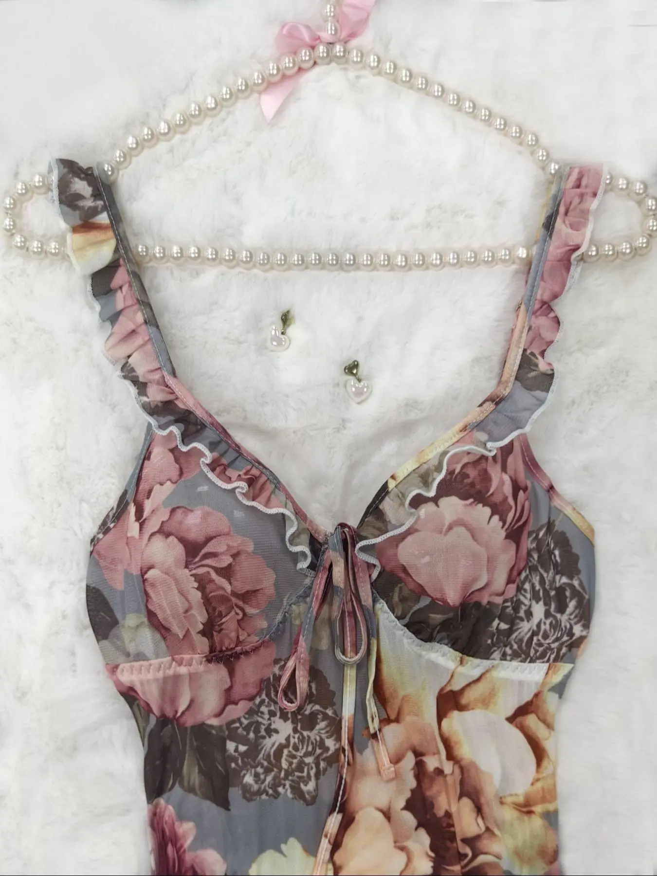 Women's Floral Print Cami Nightdress, Sexy Comfy Breathable Spaghetti Strap Nightgown for Women, Women's Sleepwear for Summer, Loungewear, Womenswear, Nightdress Pj