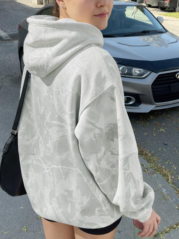 Women's Fall Winter Hooded Sweatshirt, Loose-Fit Sporty Style, Full Body Print Design, Suitable for Outdoor Activities & Casual Wear