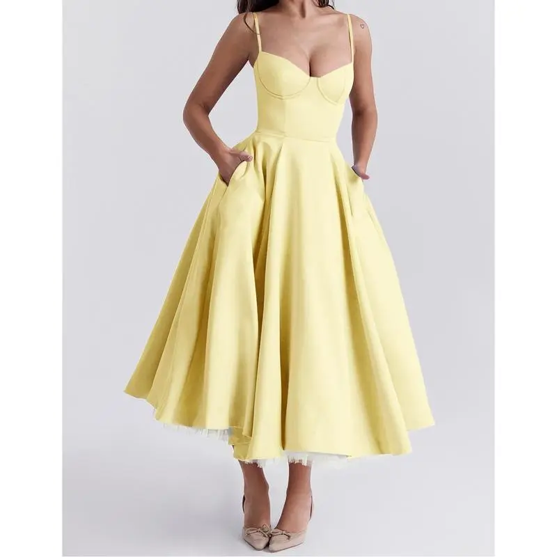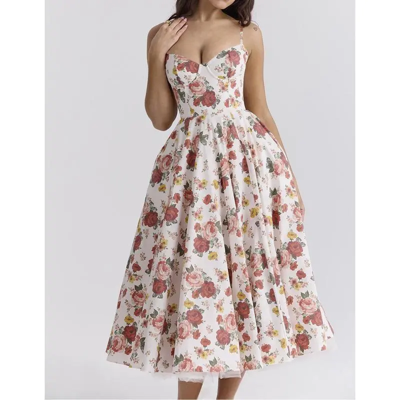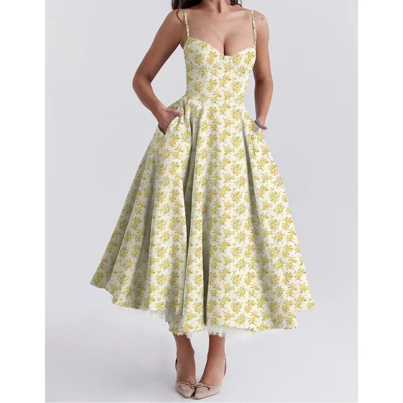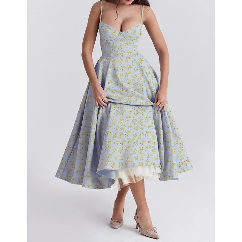 5. 2024 New Summer High-Grade Princess Dress French Mesh Large Swing Double-Layer Sling Dress Women Casual Flower