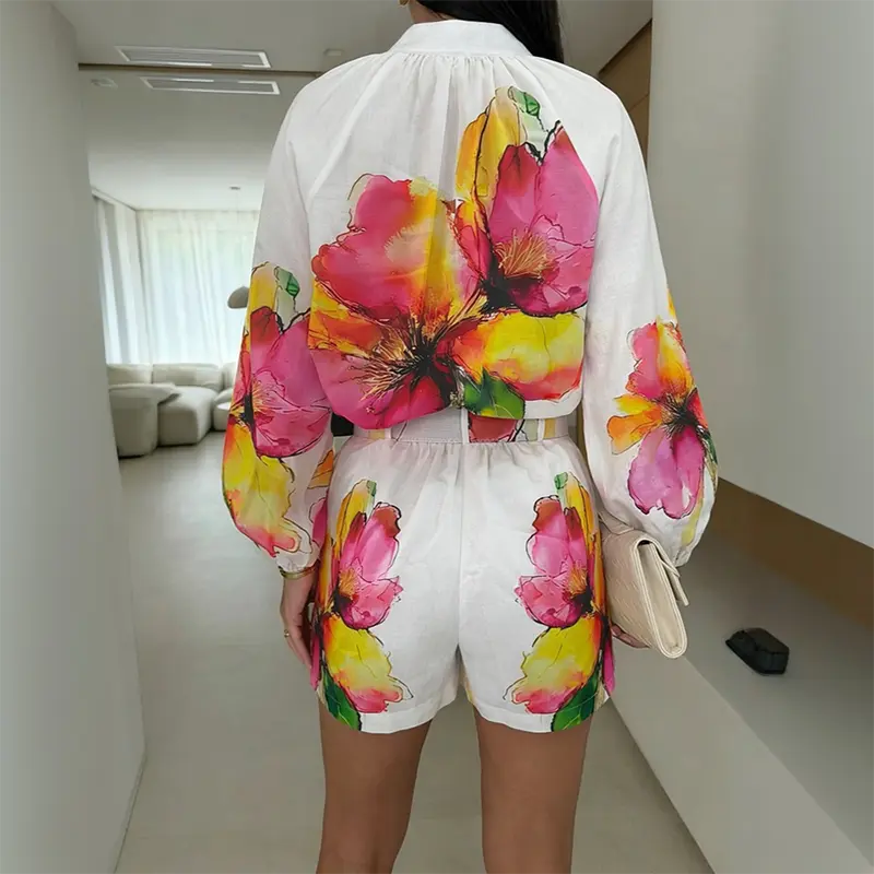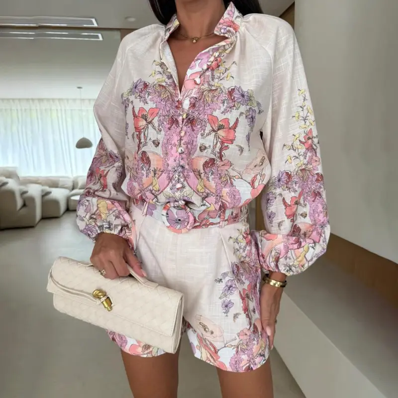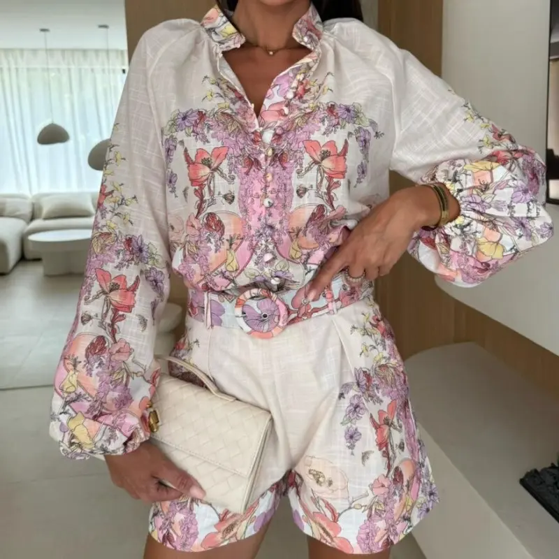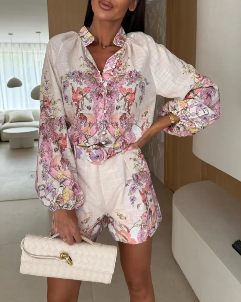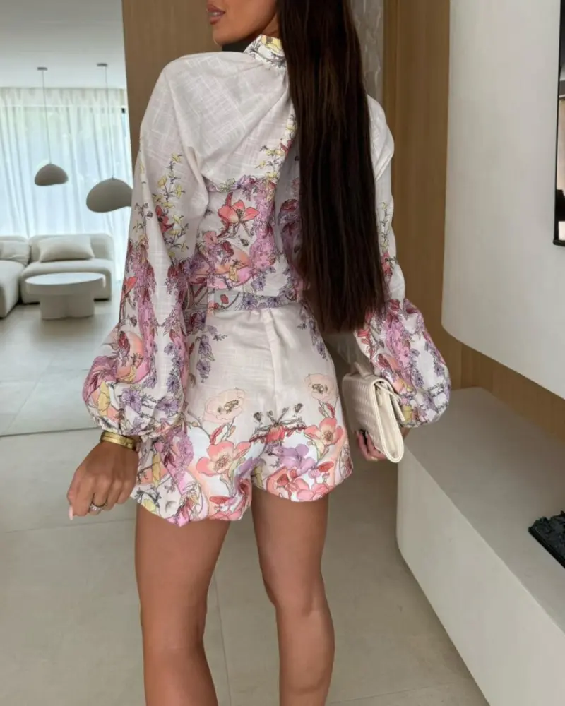 ·Lantern sleeves – Voluminous sleeves balance the streamlined shorts and add a soft, boho-inspired elegance.