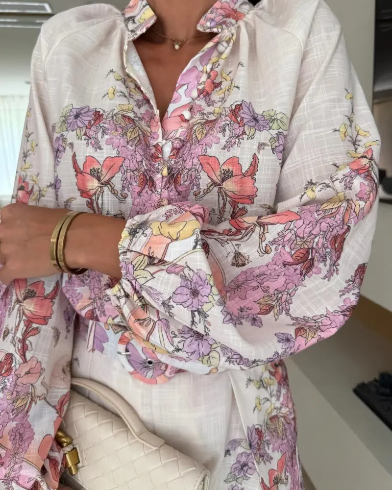 ·Floral placement print – Strategically placed floral motifs enhance structure and offer a clean, refined look without overwhelming the silhouette.