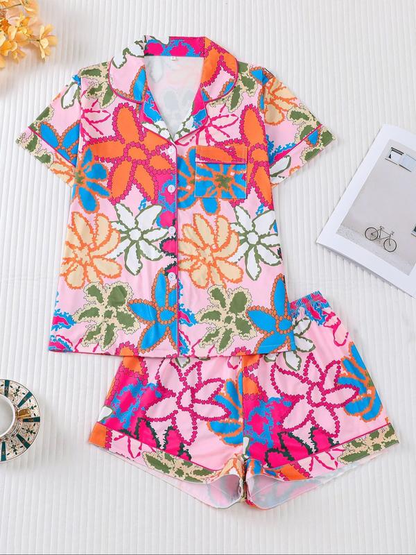 【Button-Up Top】: Comes with a button-up short-sleeve shirt with a collar, adding a classic touch to this two-piece sleepwear set.