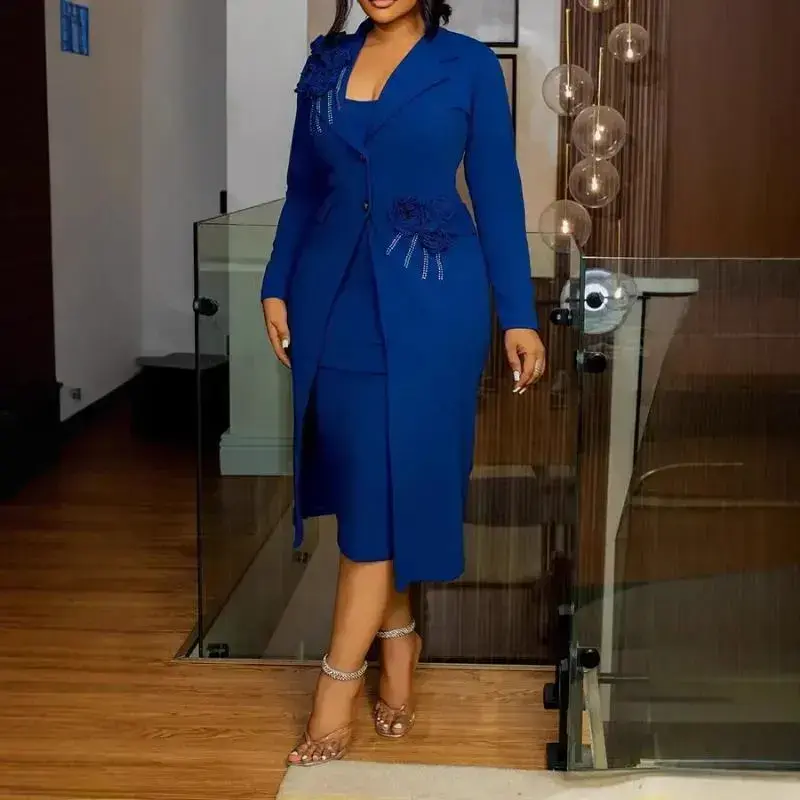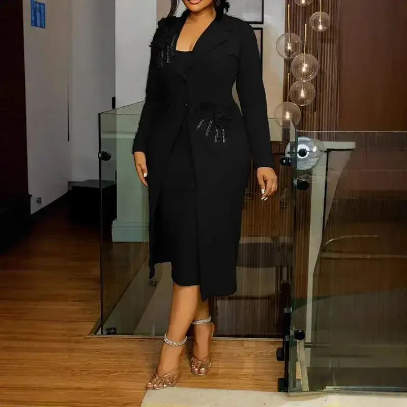 Women Dress Sets Two Pieces Set Matching Set Casual Elegant Flower V Neck Suit Coat Mid Calf Slip Dress Party Night 2025 Work Formal Womenswear