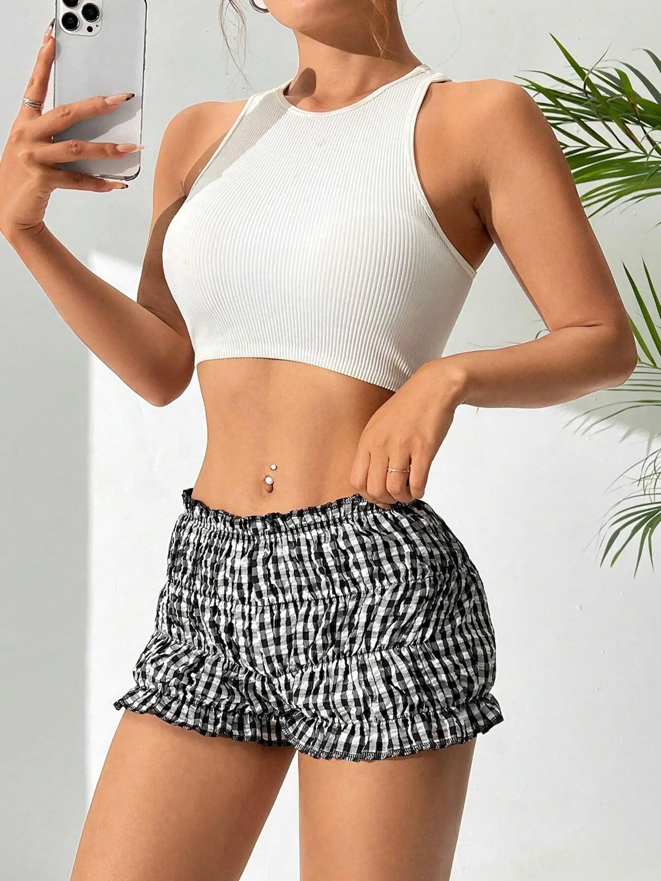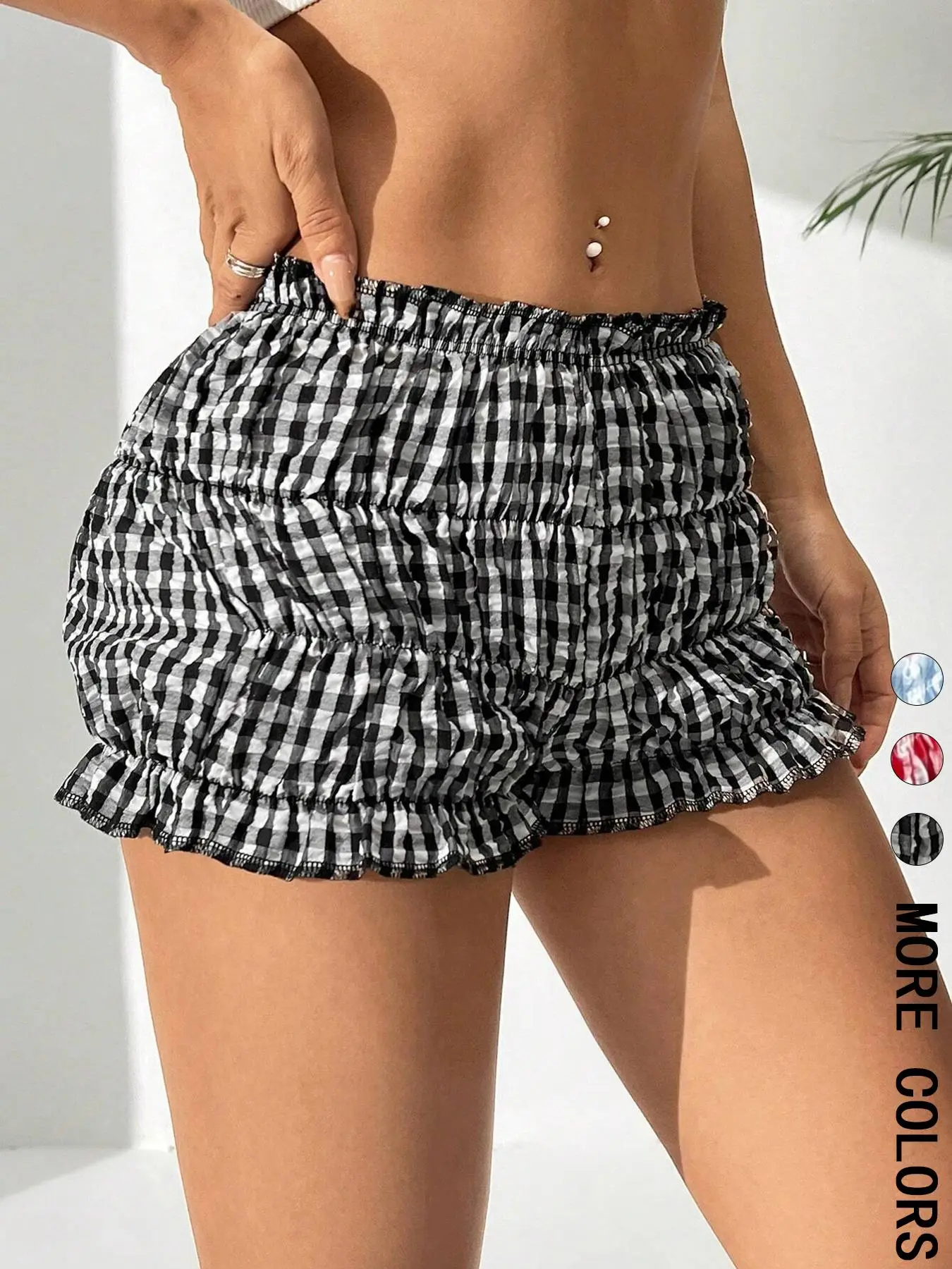 Women's Cute and Plaid Shorts with Lace Trim, Casual Fitted Summer Shorts, Perfect for Stylish Summer