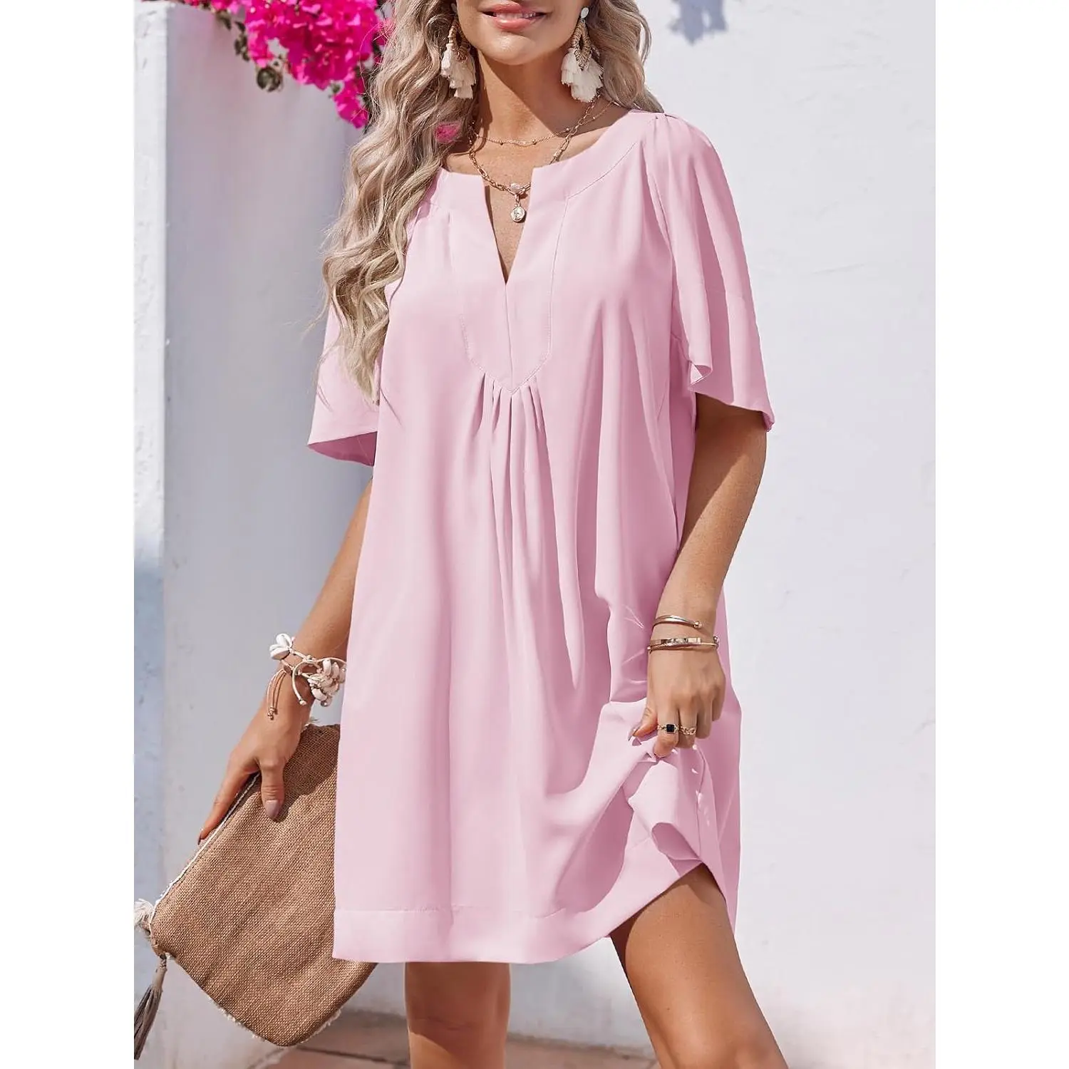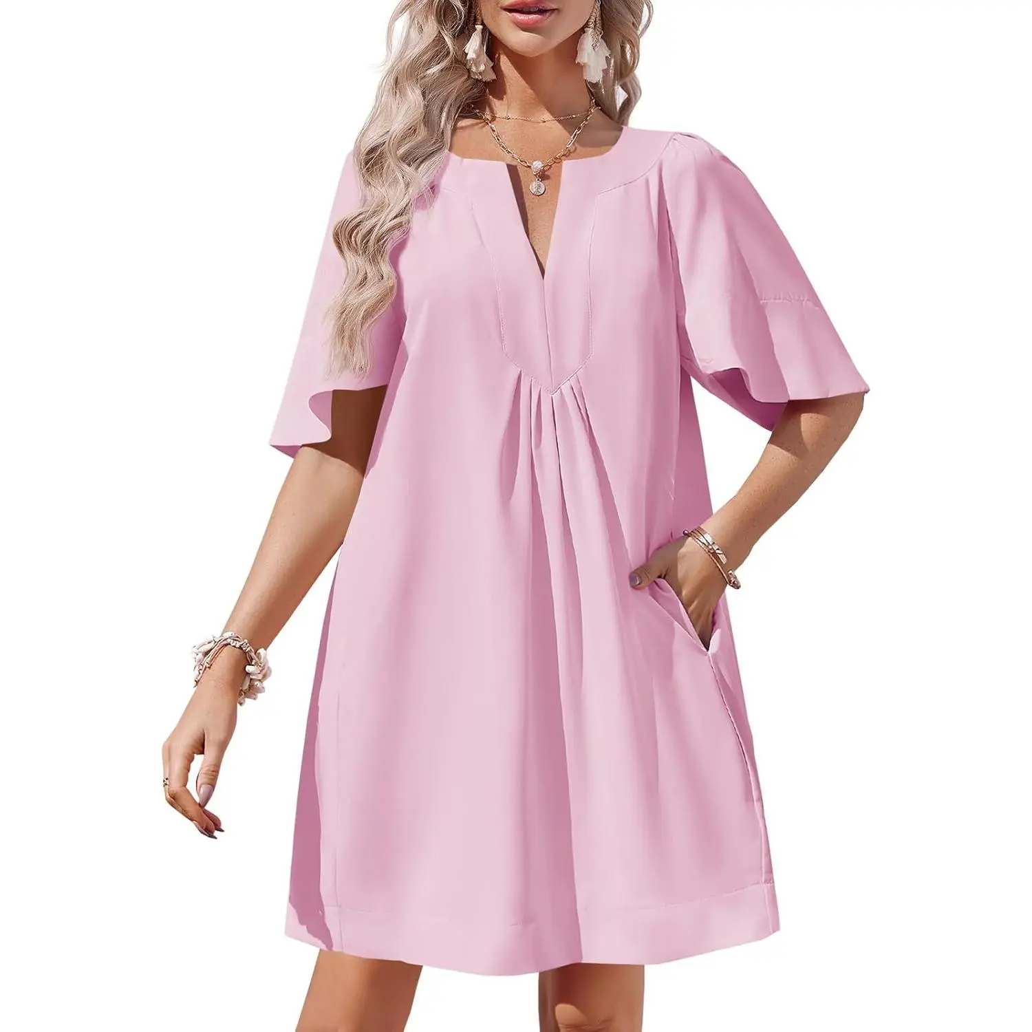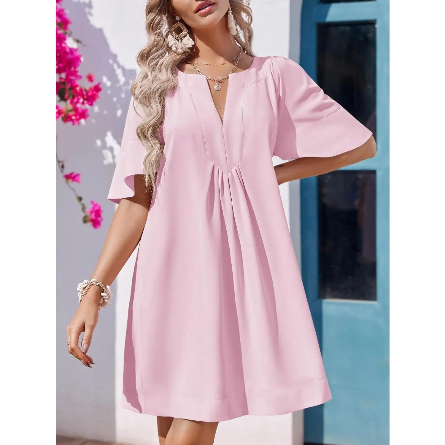 ·The dress is on the large side, want to fit recommended to take one size smaller. The womens flutter sleeve mini dress features an loose fit, allowing for a relaxed and comfortable feel.