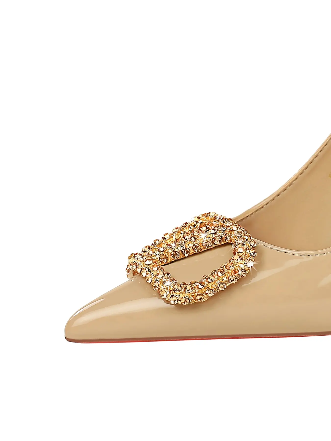 5. Women's French Style, Open Toe Fashion Shoes with Rhinestones & Metal Buckle, Slip-On PU Leather Single Shoe, High Heel Pumps