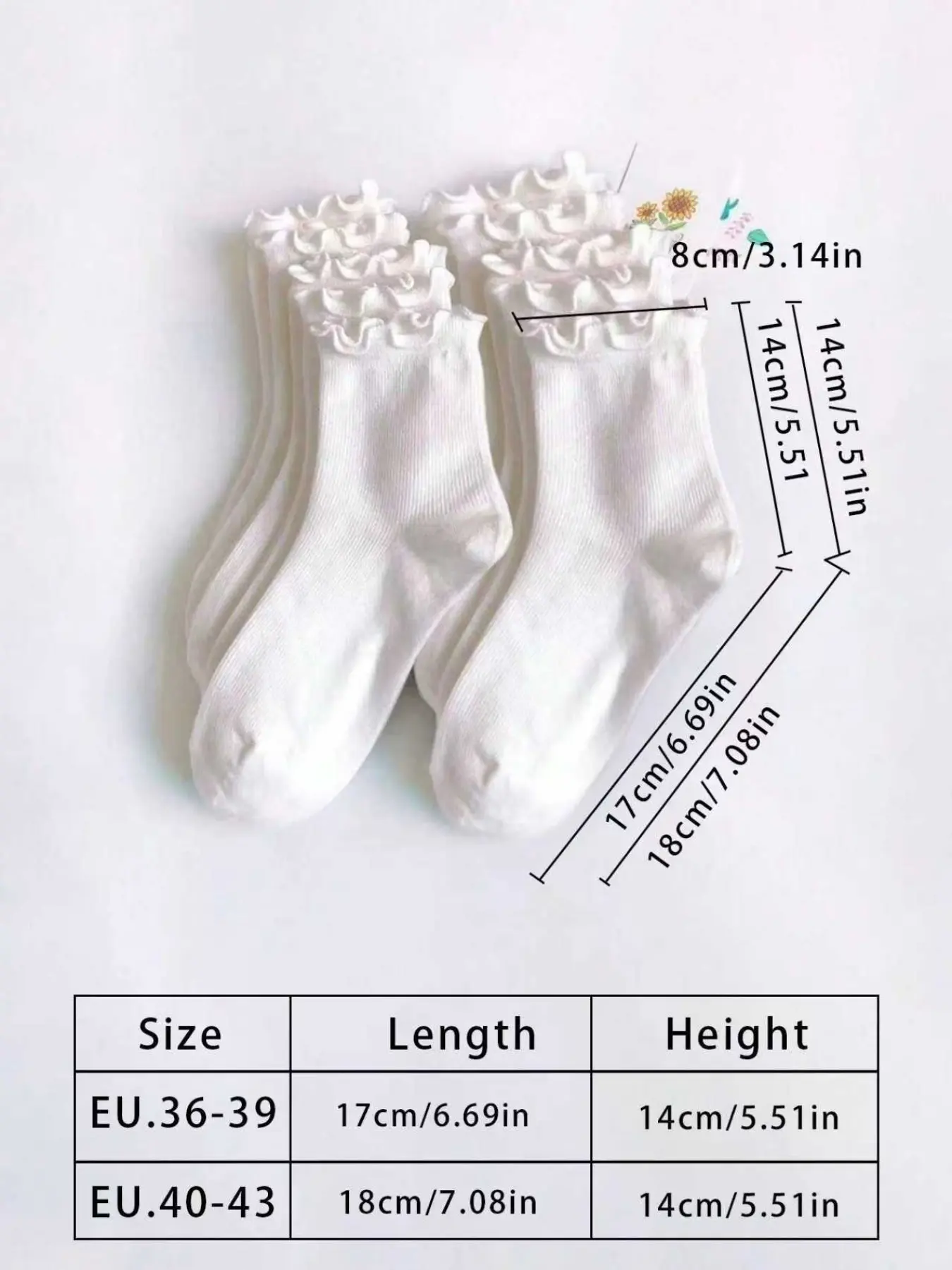 5. 10 Pairs Women's White Frill Trimmed Casual Mid-Calf Socks, Women's Casual Crew Socks, Comfort Breathable Sports Socks, Basketball Socks, White Socks, Couples' Socks, Womenswear, Moisture Wicking, Anti Bacterial, Anti Stink, Suitab