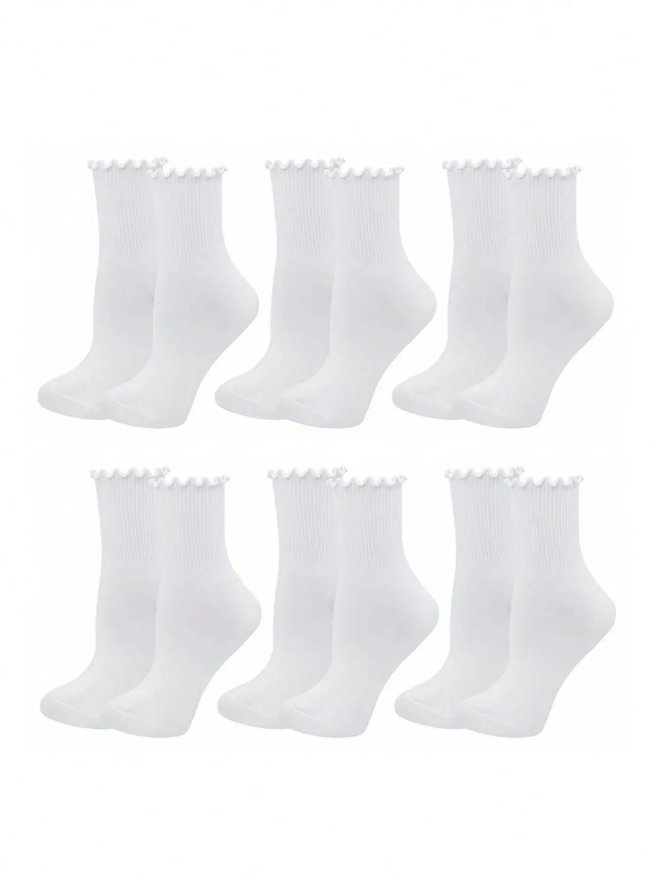 10 Pairs Women's White Frill Trimmed Casual Mid-Calf Socks, Women's Casual Crew Socks, Comfort Breathable Sports Socks, Basketball Socks, White Socks, Couples' Socks, Womenswear, Moisture Wicking, Anti Bacterial, Anti Stink, Suitab