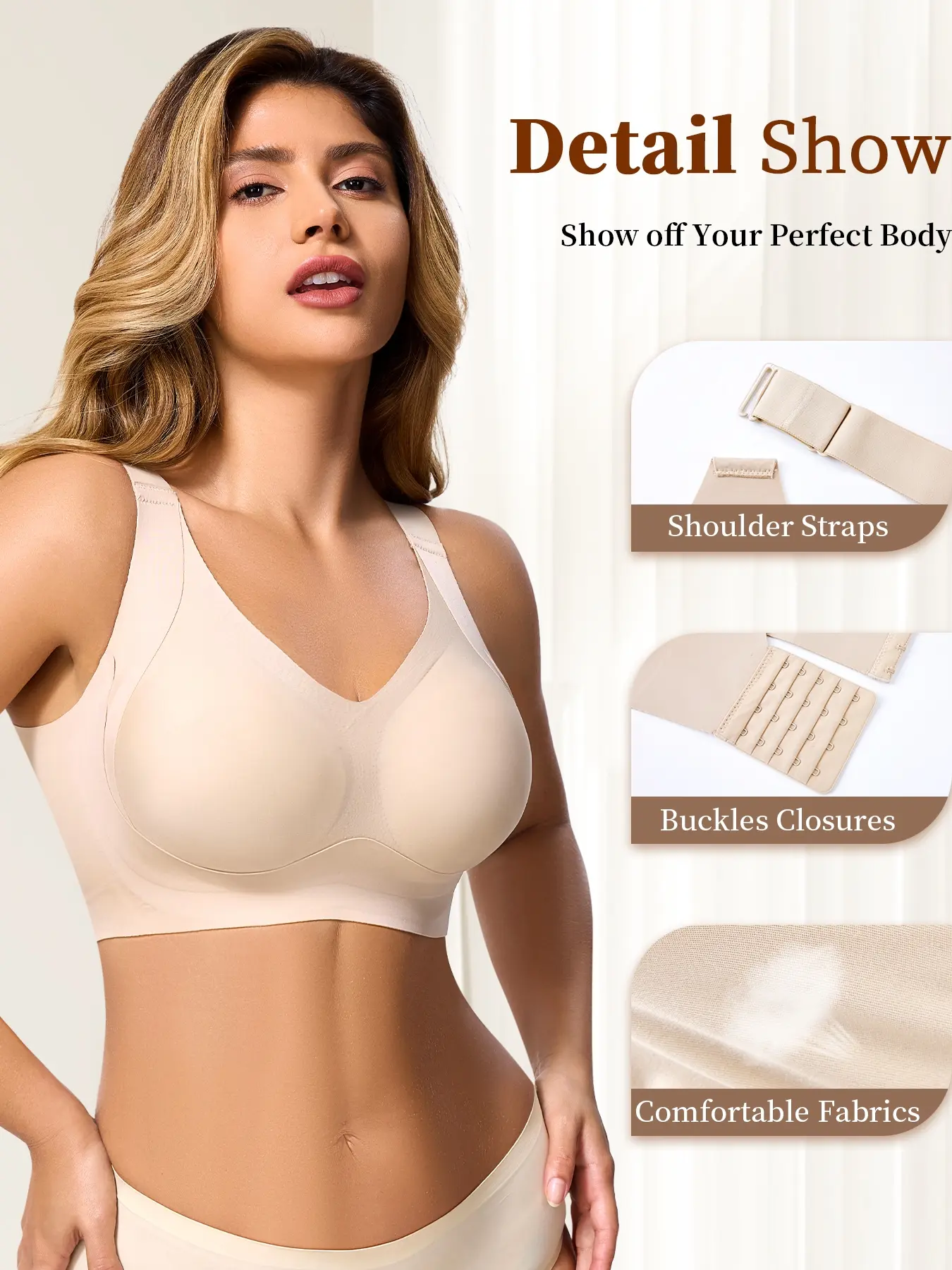【Full Coverage Cups】: Equipped with full coverage cups to ensure ample support and a natural shape without additional padding.