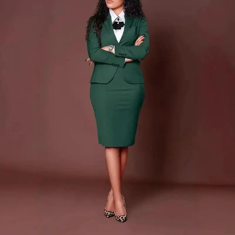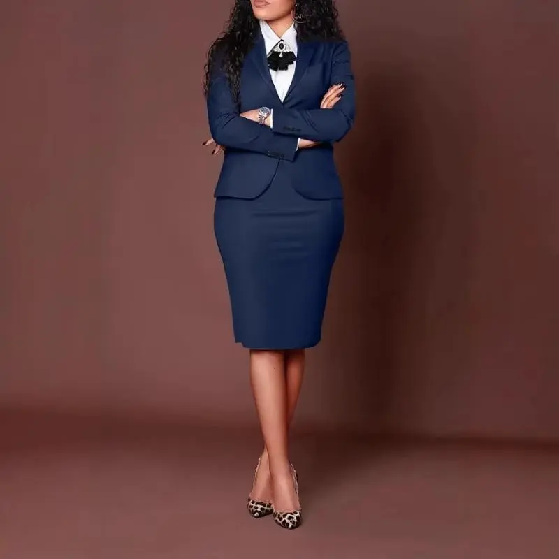 5. Women's Set Full Sleeve Button Blazer + Skirts Suit 2025 Winter Casual Streetwear Two 2 Piece Set Africa OL Work Outfits A132 A132